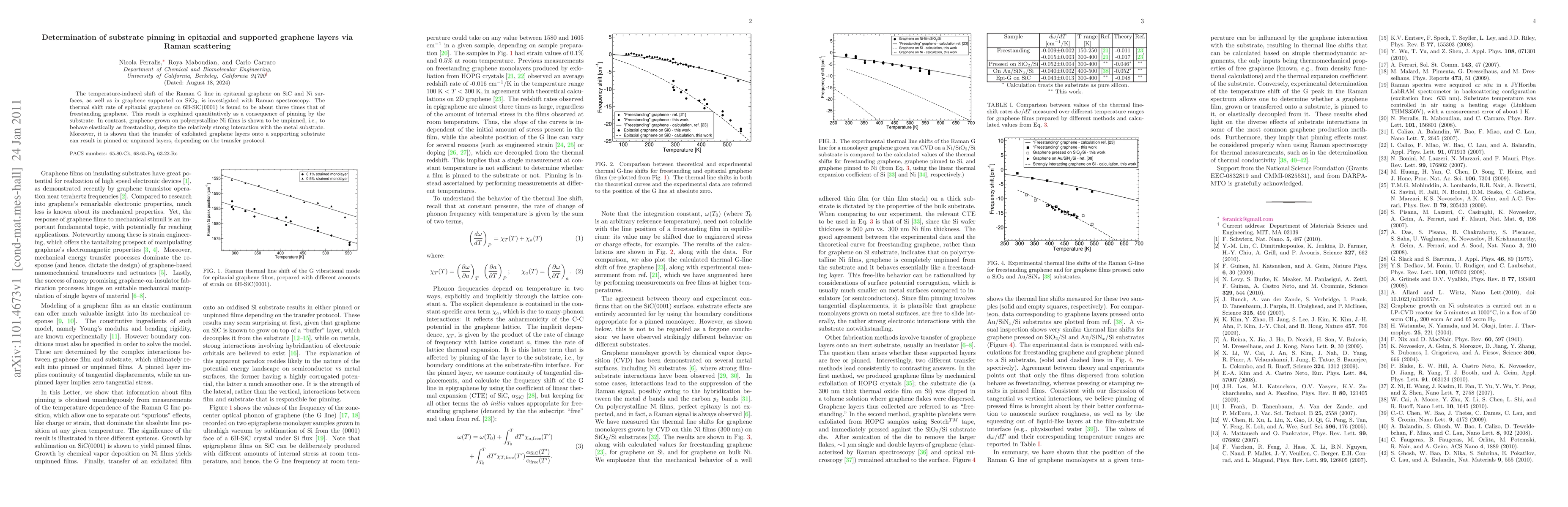 This paper investigates how different substrates affect the thermal behavior of graphene using Raman spectroscopy, finding that epitaxial graphene on SiC is pinned and exhibits a greater thermal shift, while graphene on Ni behaves like freestanding graphene, indicating lack of pinning. Transfer protocols also influence whether graphene remains pinned or unpinned on supporting substrates.