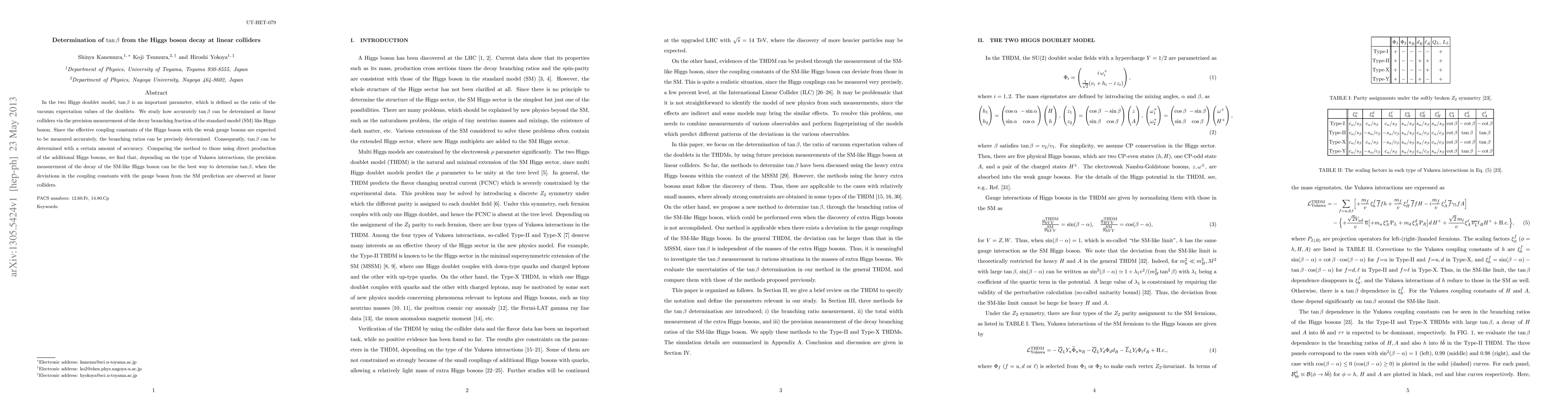 This paper investigates the accuracy of determining $\tan\beta$ in the two Higgs doublet model through precise measurements of the decay branching fractions of the SM-like Higgs boson at linear colliders. It finds that this method can be more effective than direct production of additional Higgs bosons, especially when deviations from SM predictions are observed.