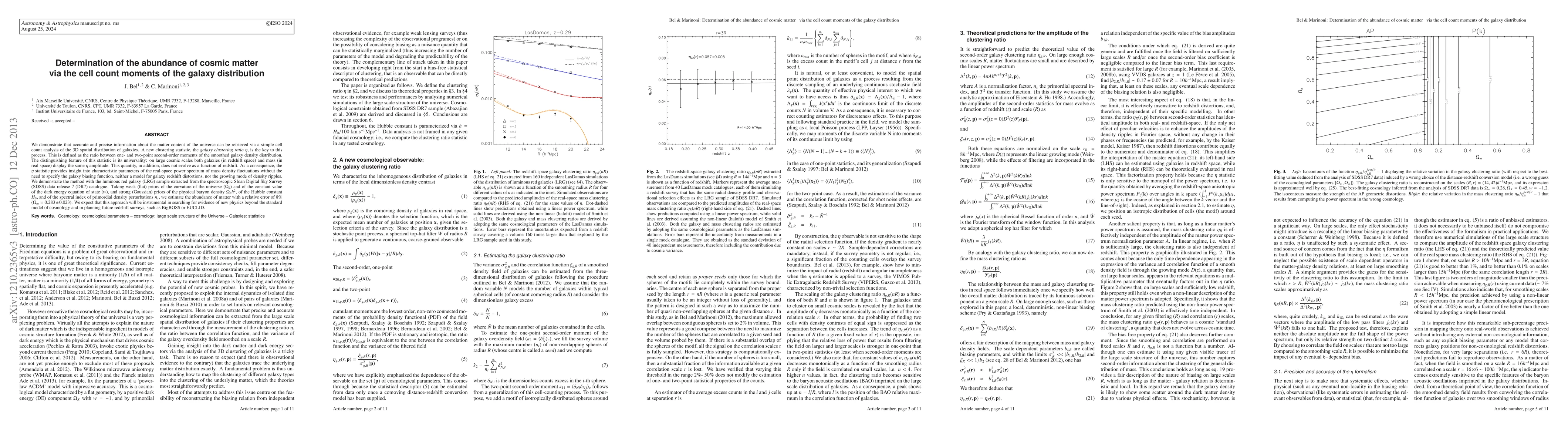 We demonstrate that accurate and precise cosmological information can be extracted from the cell count analysis of the 3D spatial clustering of galaxies once the second-order ratio between one- and two-point moments of the smoothed galaxy density distribution is analyzed. This probe does not require the calibration of any standard rod, the knowledge of the galaxy bias nor the modeling of galaxy redshift distortions. Using the spectroscopic Sloan Digital Sky Survey (SDSS) data release 7 (DR7) galaxy sample, no cosmic microwave background (CMB) information, weak (flat) priors on the value of the curvature of the universe (Omega_k) and the constant value of the dark energy equation of state (w), we estimate the abundance of matter (Omega_m) with a relative error of 11% (at 68% c.l.). The method may be instrumental in searching for evidences of new physics beyond the standard model of cosmology and in planning future missions such as BigBOSS or EUCLID.