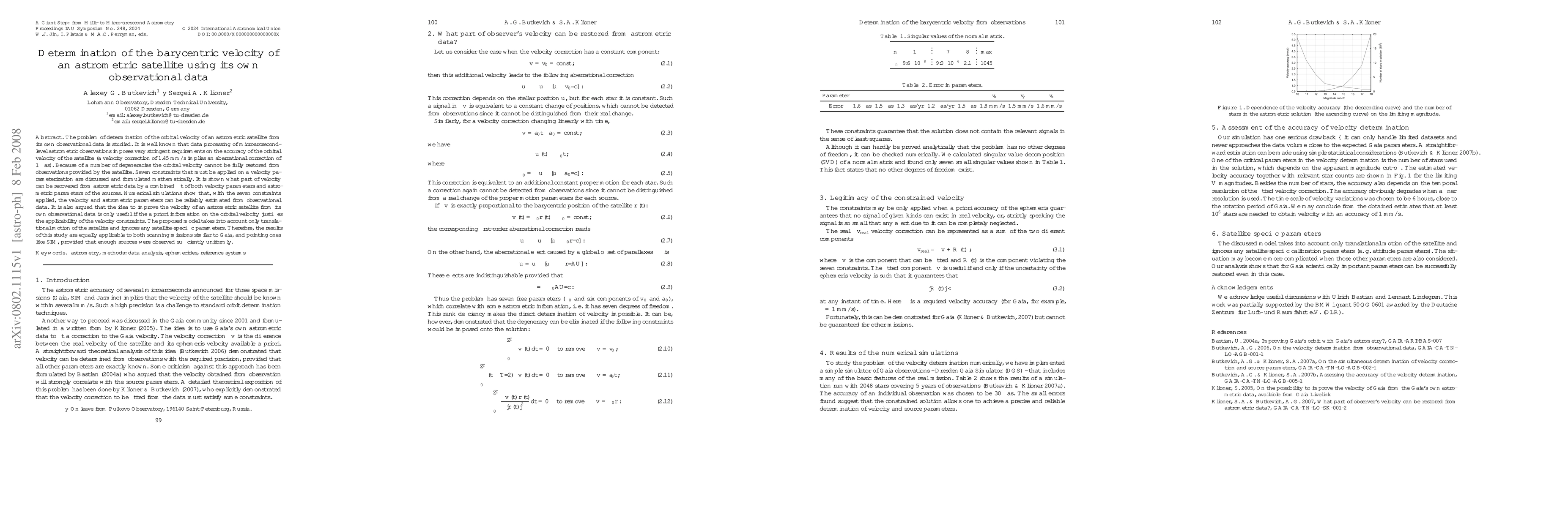 This paper investigates the determination of an astrometric satellite's orbital velocity using its observational data, highlighting the stringent accuracy requirements for such data. It proposes seven constraints to parameterize the velocity and demonstrates through simulations that the satellite's velocity can be reliably estimated, provided a priori velocity information is valid.
