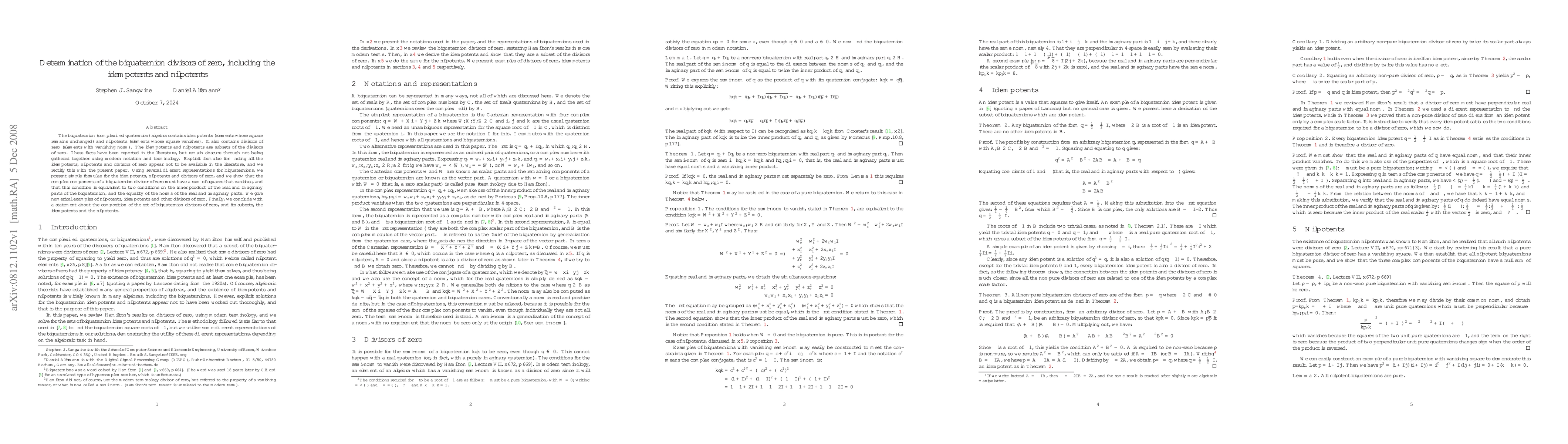 This paper provides explicit formulae for idempotents, nilpotents, and divisors of zero in the biquaternion algebra, clarifying previously obscure relationships using modern notation. It concludes with numerical examples and a discussion on the composition of these elements.
