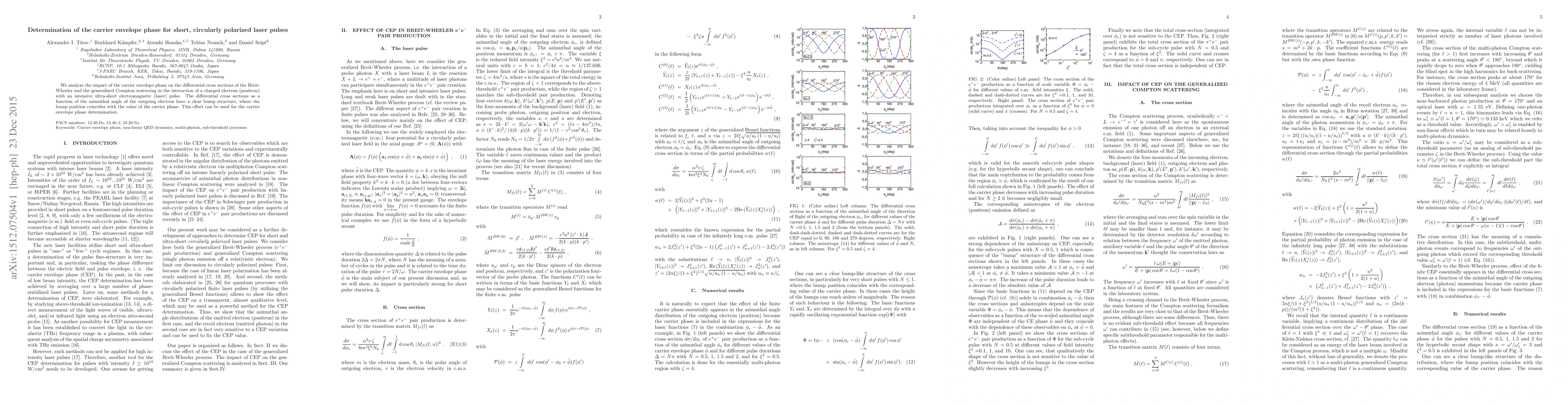 This paper investigates the influence of the carrier envelope phase on scattering processes involving ultra-short, circularly polarized laser pulses. It finds a distinct bump structure in the differential cross sections correlating with the carrier phase, offering a method for determining the carrier envelope phase.