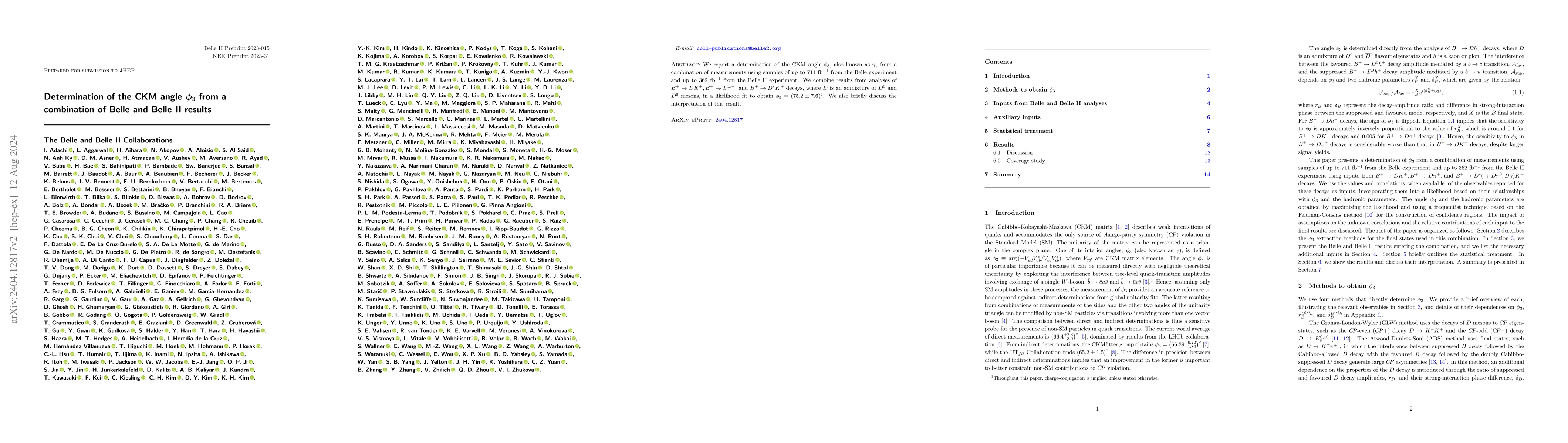 This paper combines data from the Belle and Belle II experiments to determine the CKM angle $\phi_{3}$ (or $\gamma$), yielding a value of $(78.6^{+7.2}_{-7.3})^{\circ}$. The analysis utilizes decays such as $B^+\to DK^+$ and $B^+\to D\pi^+$ to enhance the measurement precision.