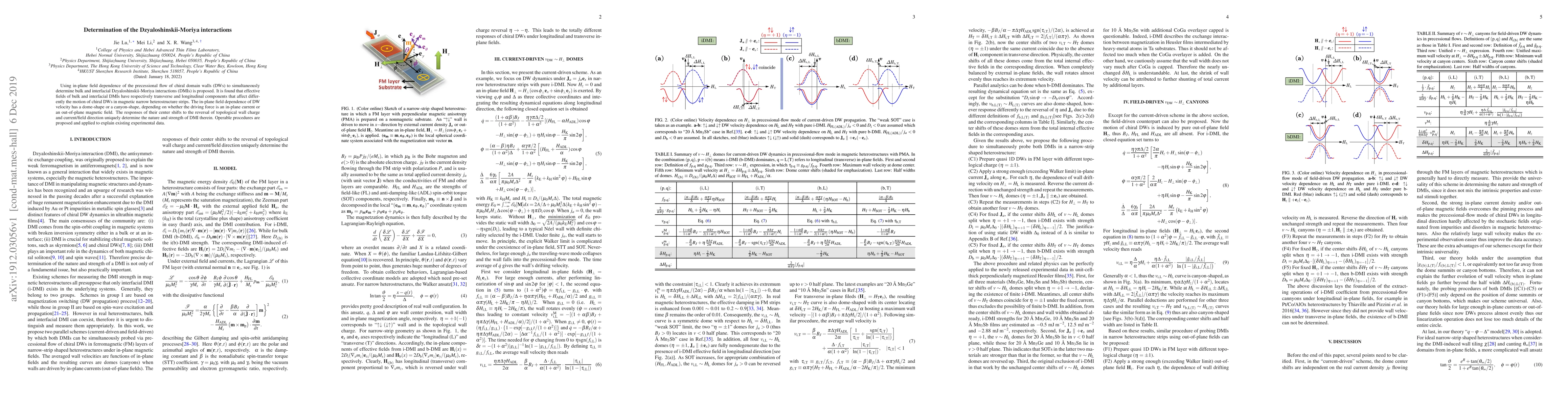 Using in-plane field dependence of the precessional flow of chiral domain walls (DWs) to simultaneously determine bulk and interfacial Dzyaloshinskii-Moriya interactions (DMIs) is proposed. It is found that effective fields of bulk and interfacial DMIs have respectively transverse and longitudinal components that affect differently the motion of chiral DWs in magnetic narrow heterostructure strips. The in-plane field dependence of DW velocity has a dome-shape or a canyon-shape, depending on whether the driving force is an in-plane current or an out-of-plane magnetic field. The responses of their center shifts to the reversal of topological wall charge and current/field direction uniquely determine the nature and strength of DMI therein. Operable procedures are proposed and applied to explain existing experimental data.