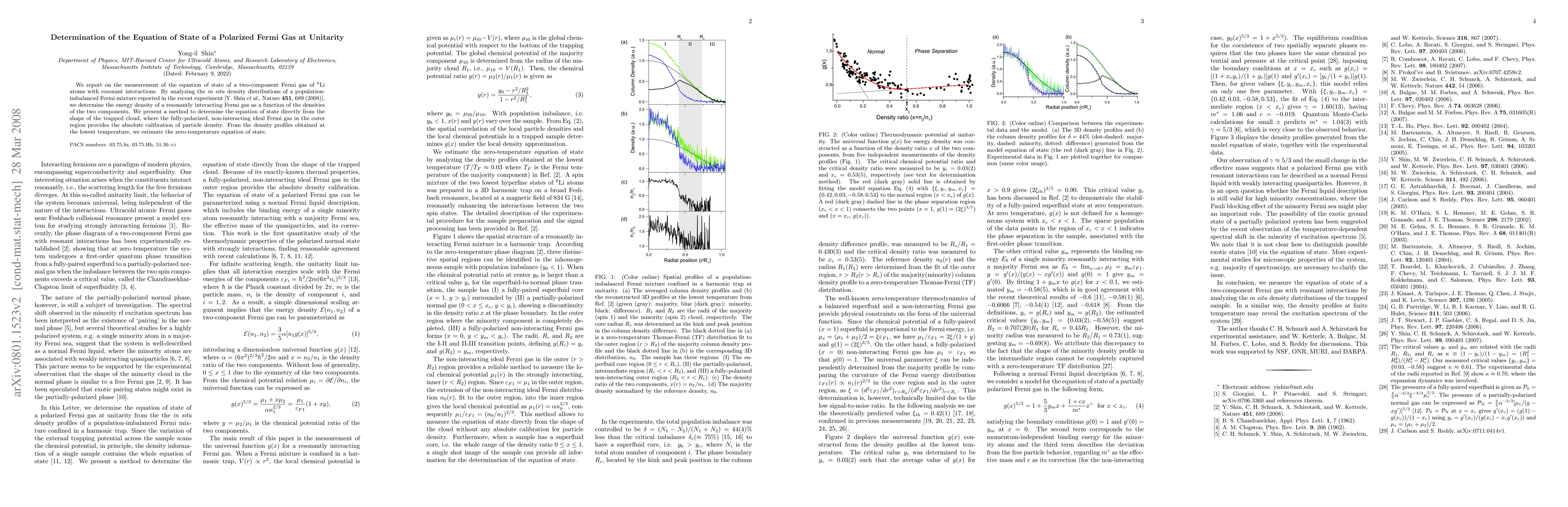 This paper measures the equation of state for a two-component Fermi gas of $^6$Li atoms at unitarity, utilizing the density profiles of a population-imbalanced mixture. The study provides a method to derive the equation of state directly from the shape of the trapped cloud, calibrated by the non-interacting ideal Fermi gas in the outer region.