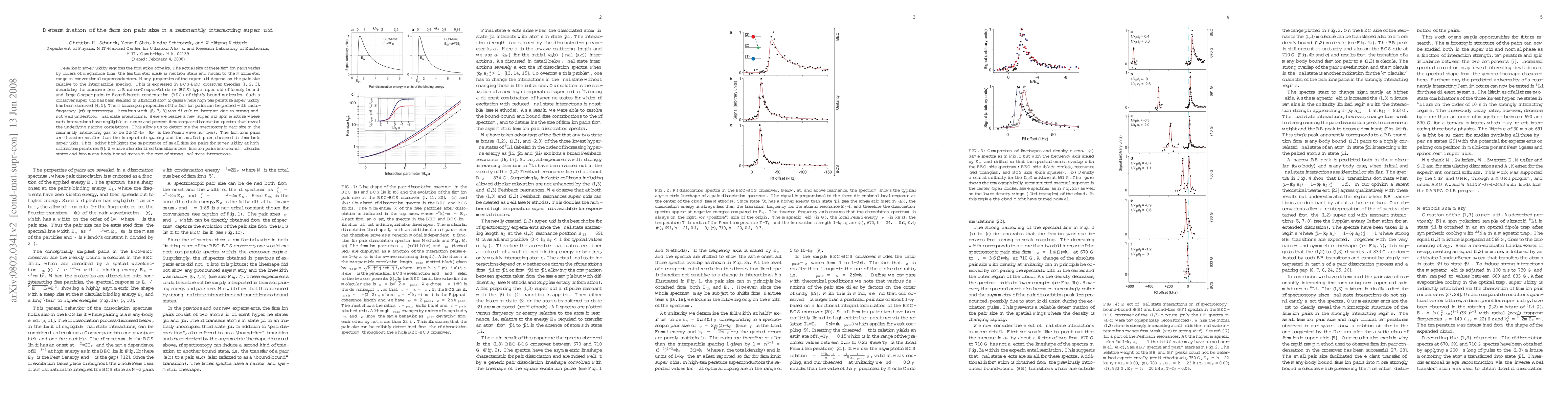 This study determines the spectroscopic pair size in a resonantly interacting superfluid to be 2.6(2)/kF, indicating that these small fermion pairs are smaller than the interparticle spacing, which is crucial for high-temperature superfluidity. The research also reveals transitions from fermion pairs into bound molecular and many-body states under strong final state interactions.