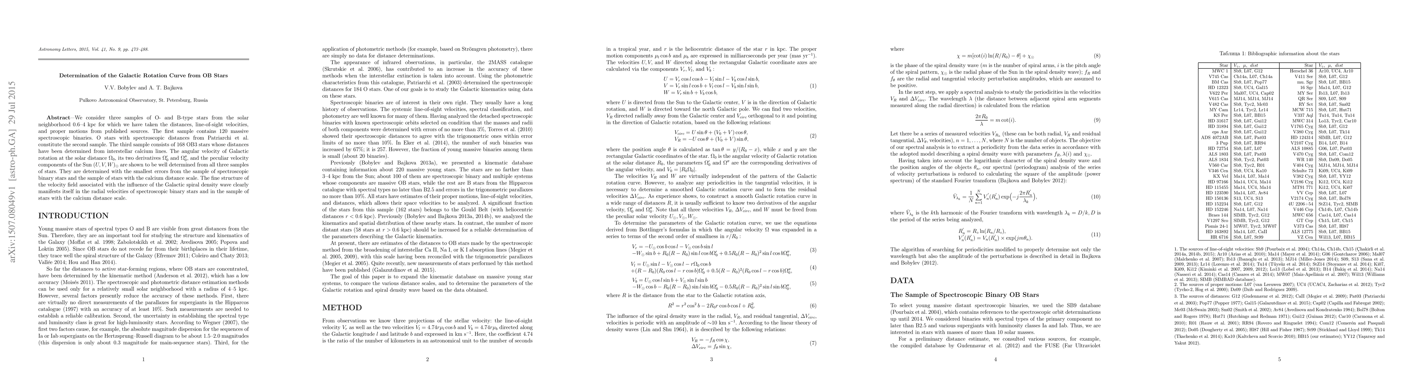We consider three samples of O- and B-type stars from the solar neighborhood 0.6--4 kpc for which we have taken the distances, line-of-sight velocities, and proper motions from published sources. The first sample contains 120 massive spectroscopic binaries. O stars with spectroscopic distances from Patriarchi et al. constitute the second sample. The third sample consists of 168 OB3 stars whose distances have been determined from interstellar calcium lines. The angular velocity of Galactic rotation at the solar distance $\Omega_0,$ its two derivatives $\Omega'_0$ and $\Omega"_0,$ and the peculiar velocity components of the Sun $(U,V,W)_\odot$ are shown to be well determined from all three samples of stars. They are determined with the smallest errors from the sample of spectroscopic binary stars and the sample of stars with the calcium distance scale. The fine structure of the velocity field associated with the influence of the Galactic spiral density wave clearly manifests itself in the radial velocities of spectroscopic binary stars and in the sample of stars with the calcium distance scale.