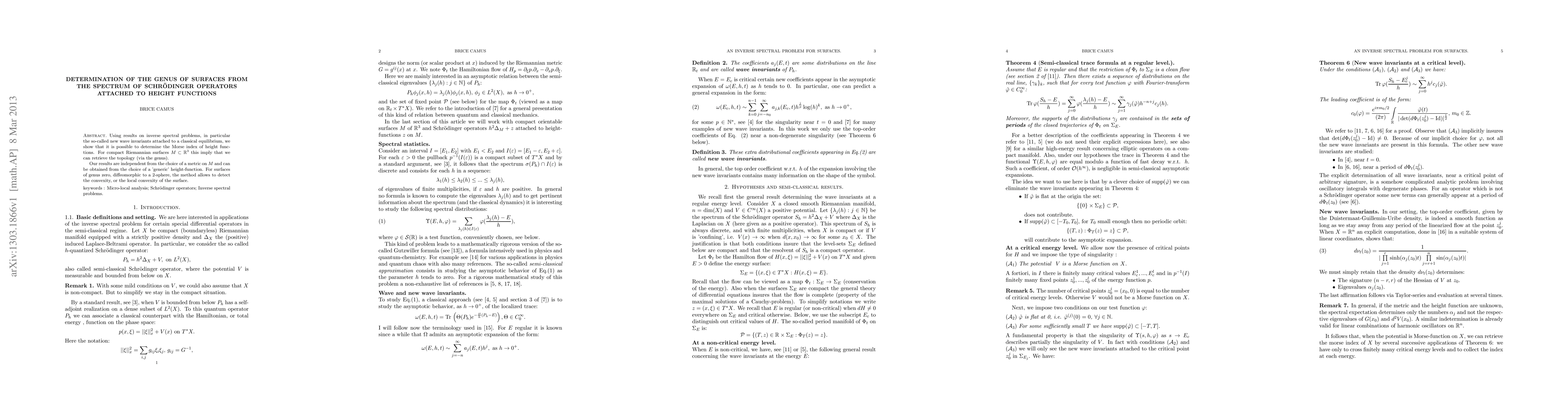 Using results on inverse spectral problems, in particular the so-called new wave invariants attached to a classical equilibrium, we show that it is possible to determine the Morse index of height functions. For compact Riemannian surfaces $M\subset \mathbb{R}^3$ this imply that we can retrieve the topology (via the genus). Our results are independent from the choice of a metric on $M$ and can be obtained from the choice of a 'generic' height-function. For surfaces of genus zero, diffeomorphic to a 2-sphere, the method allows to detect the convexity, or the local convexity of the surface. Keywords : Micro-local analysis; Schr\"odinger operators; Inverse spectral problems.