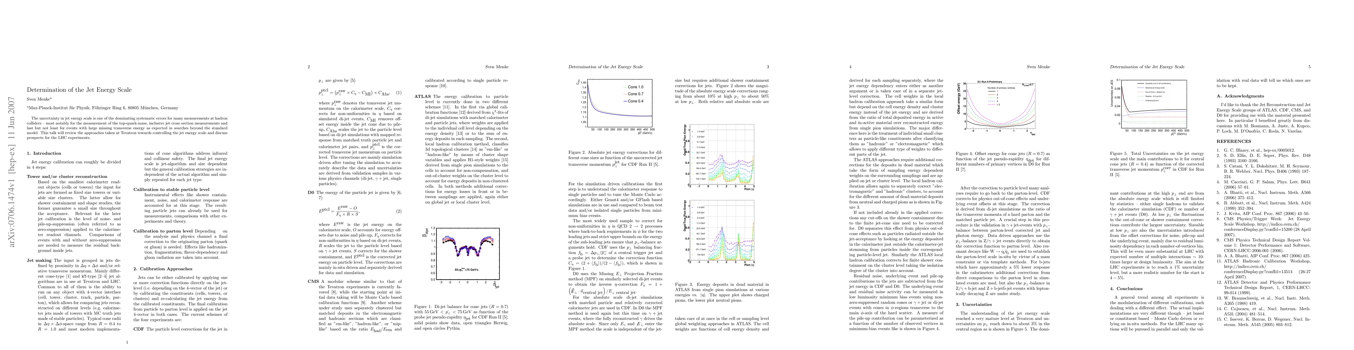 The uncertainty in jet energy scale is one of the dominating systematic errors for many measurements at hadron colliders - most notably for the measurement of the top-quark-mass, inclusive jet cross section measurements and last but not least for events with large missing transverse energy as expected in searches beyond the standard model. This talk will review the approaches taken at Tevatron towards controlling the jet energy scale and discuss prospects for the LHC experiments.