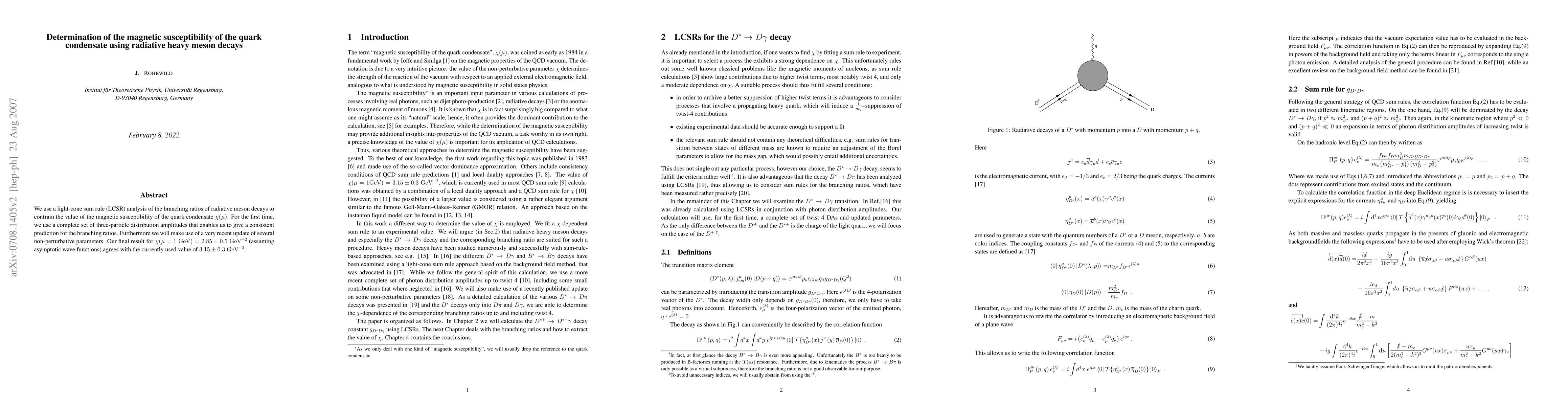 We use a light-cone sum rule (LCSR) analysis of the branching ratios of radiative meson decays to contrain the value of the magnetic susceptibility of the quark condensate $\chi(\mu)$. For the first time, we use a complete set of three-particle distribution amplitudes that enables us to give a consistent prediction for the branching ratios. Furthermore we will make use of a very recent update of several non-perturbative parameters. Our final result for $\chi(\mu= 1 {\rm GeV})= 2.85 \pm 0.5 {\rm GeV}^{-2}$ (assuming asymptotic wave functions) agrees with the currently used value of $3.15 \pm 0.3 {\rm GeV}^{-2}$.