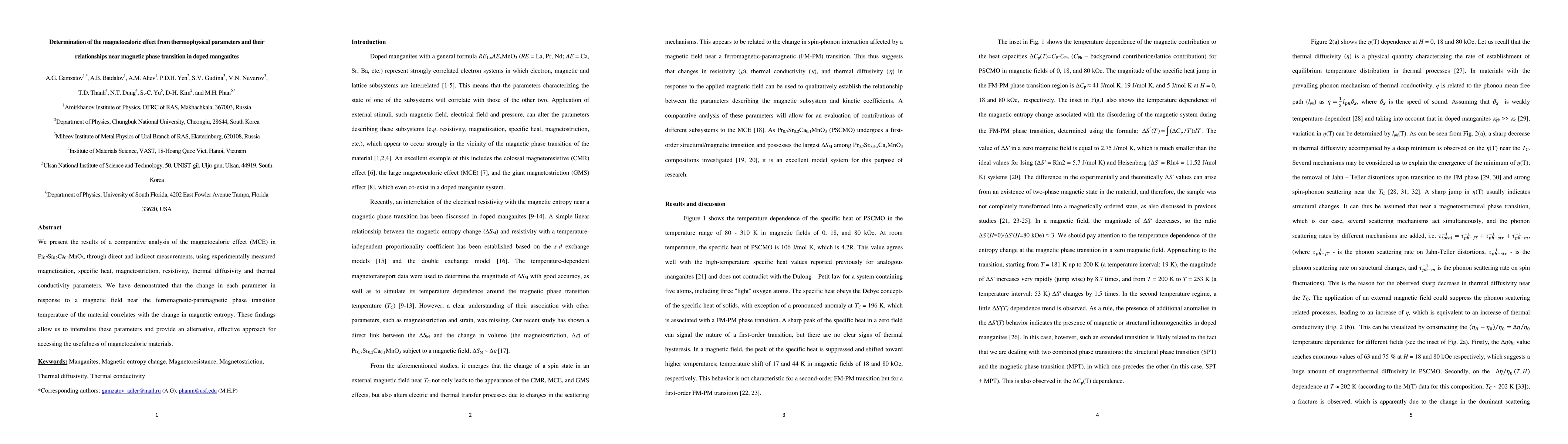 We present the results of a comparative analysis of the magnetocaloric effect (MCE) in Pr0.7Sr0.2Ca0.1MnO3, through direct and indirect measurements, using experimentally measured magnetization, specific heat, magnetostriction, resistivity, thermal diffusivity and thermal conductivity parameters. We have demonstrated that the change in each parameter in response to a magnetic field near the ferromagnetic-paramagnetic phase transition temperature of the material correlates with the change in magnetic entropy. These findings allow us to interrelate these parameters and provide an alternative, effective approach for accessing the usefulness of magnetocaloric materials.
