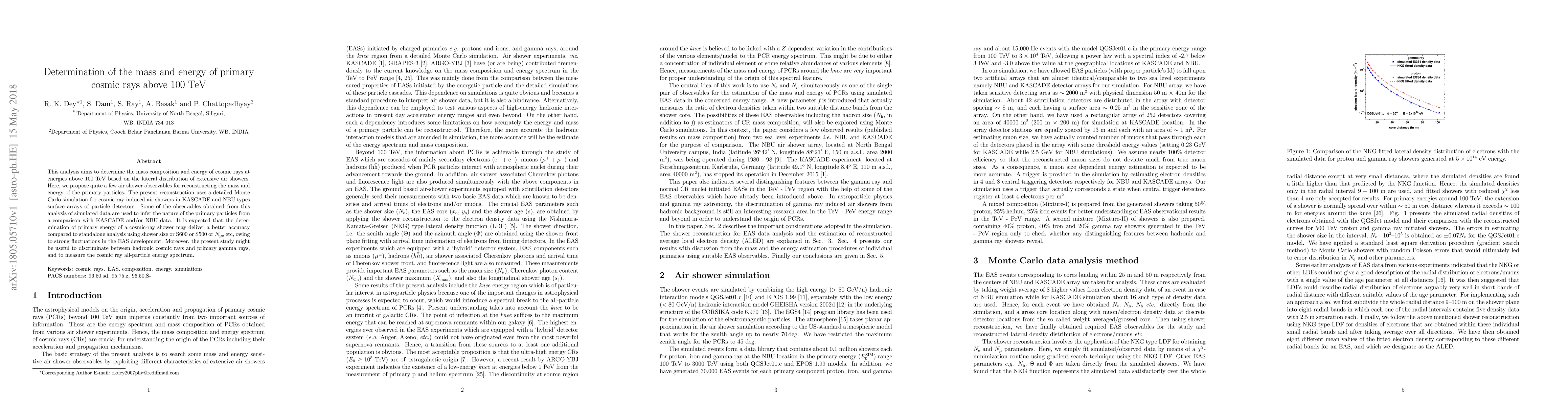Researchers used air shower data to determine the mass and energy of cosmic rays above 100 TeV, aiming to improve accuracy over traditional methods and better distinguish between hadronic and gamma-ray showers.