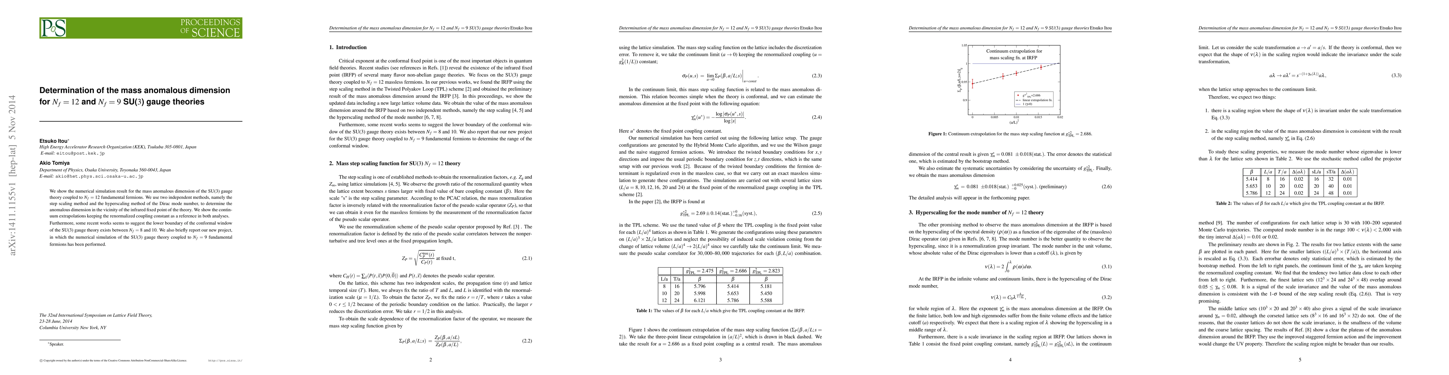 We show the numerical simulation result for the mass anomalous dimension of the SU($3$) gauge theory coupled to $N_f = 12$ fundamental fermions. We use two independent methods, namely the step scaling method and the hyperscaling method of the Dirac mode number, to determine the anomalous dimension in the vicinity of the infrared fixed point of the theory. We show the continuum extrapolations keeping the renormalized coupling constant as a reference in both analyses. Furthermore, some recent works seems to suggest the lower boundary of the conformal window of the SU($3$) gauge theory exists between $N_f=8$ and $10$. We also briefly report our new project, in which the numerical simulation of the SU($3$) gauge theory coupled to $N_f=9$ fundamental fermions has been performed.