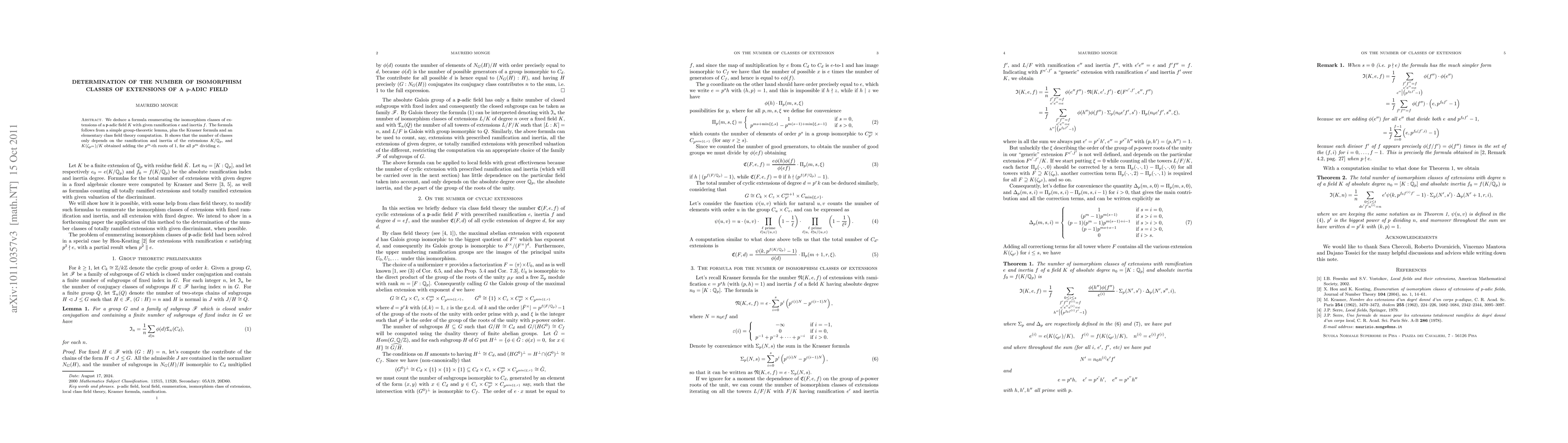 Two-line summary: This paper provides a formula to enumerate the isomorphism classes of extensions of a $\kp$-adic field $K$, based on ramification and inertia, derived from a group-theoretic lemma, Krasner's formula, and class field theory. The result shows that the number of classes depends solely on the ramification and inertia of specific extensions involving $p^m$-th roots of unity.