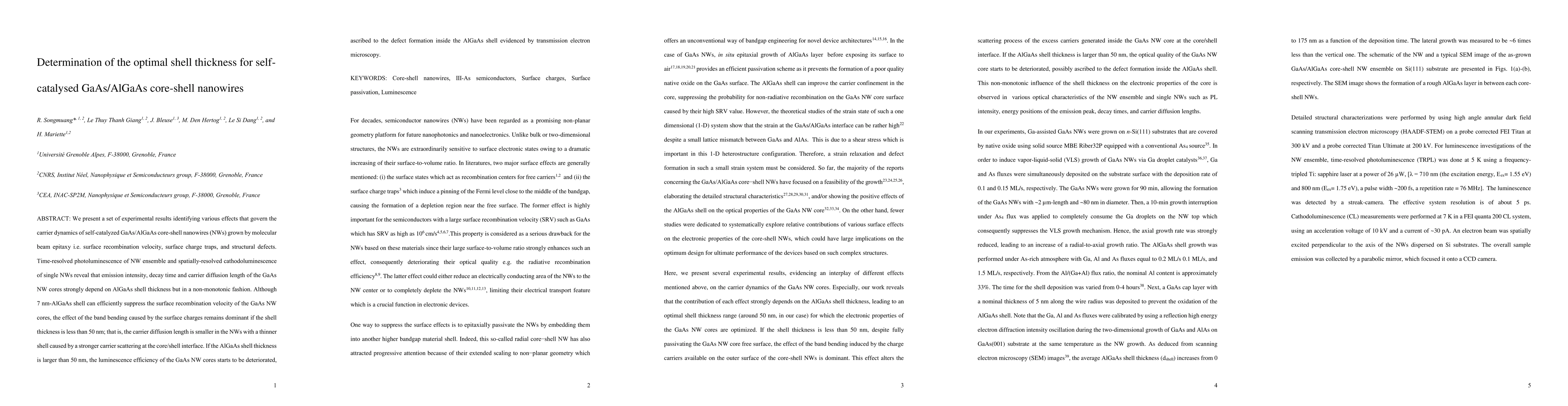 This study experimentally determines the optimal AlGaAs shell thickness for GaAs/AlGaAs core-shell nanowires, revealing that while a 7 nm shell suppresses surface recombination, shells thicker than 50 nm lead to defect formation and reduced luminescence efficiency.