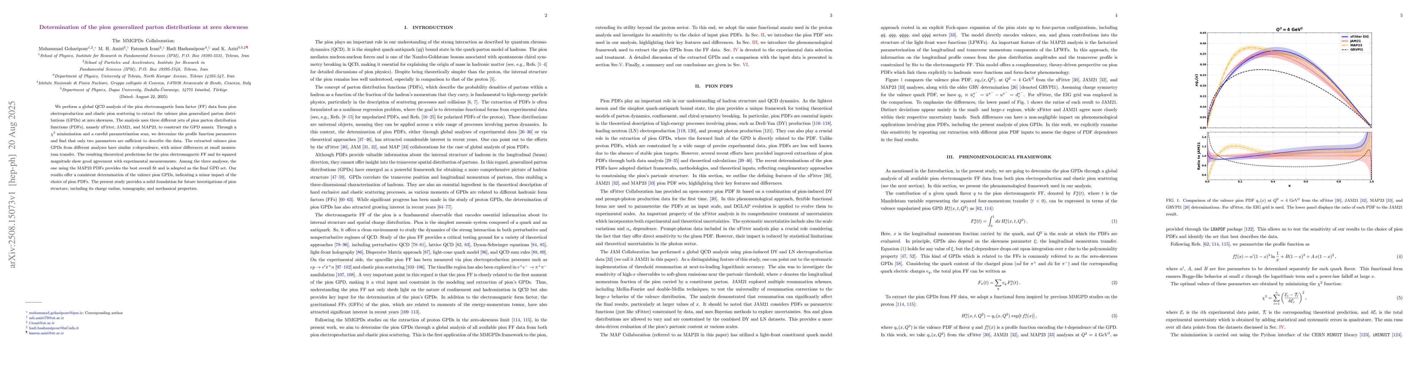 The study performs a global QCD analysis of pion electromagnetic form factor (FF) data from pion electroproduction and elastic pion scattering to extract valence pion generalized parton distributions (GPDs) at zero skewness using three different sets of pion parton distribution functions (PDFs): xFitter, JAM21, and MAP23.