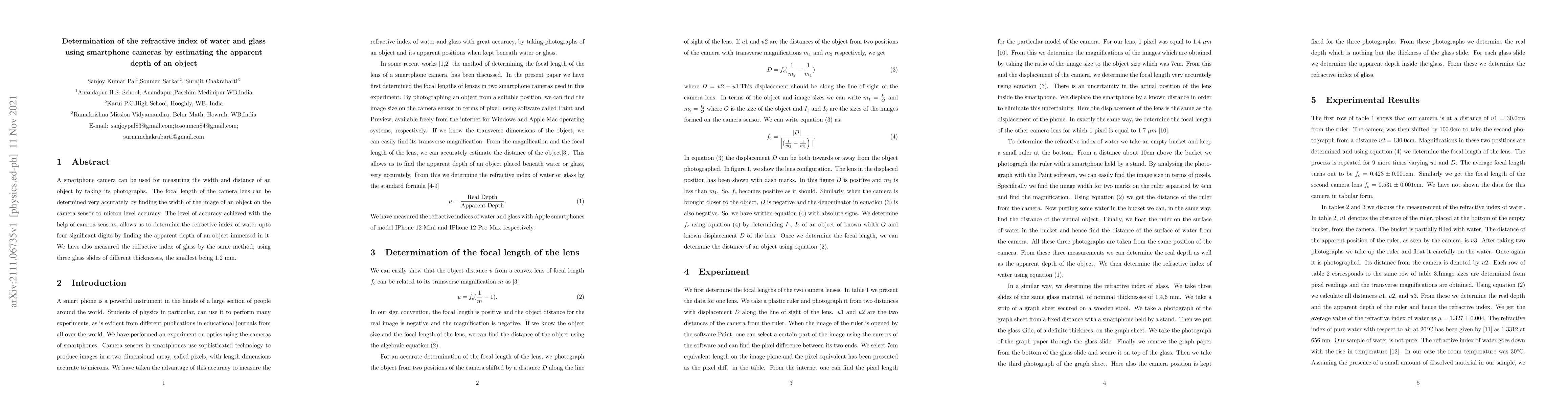 Researchers used smartphone cameras to measure the refractive index of water and glass with high accuracy, estimating the apparent depth of objects immersed in them.