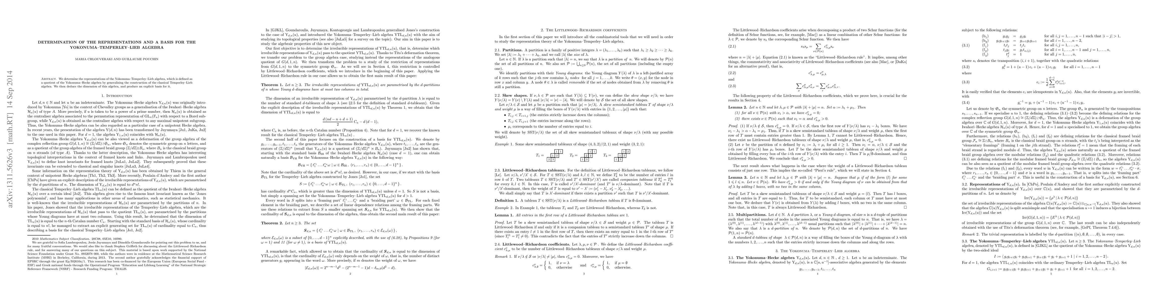 Summary: This paper determines the representations of the Yokonuma-Temperley-Lieb algebra and provides an explicit basis for it, while also calculating its dimension. The algebra is derived by generalizing the classical Temperley-Lieb algebra from the Yokonuma-Hecke algebra.