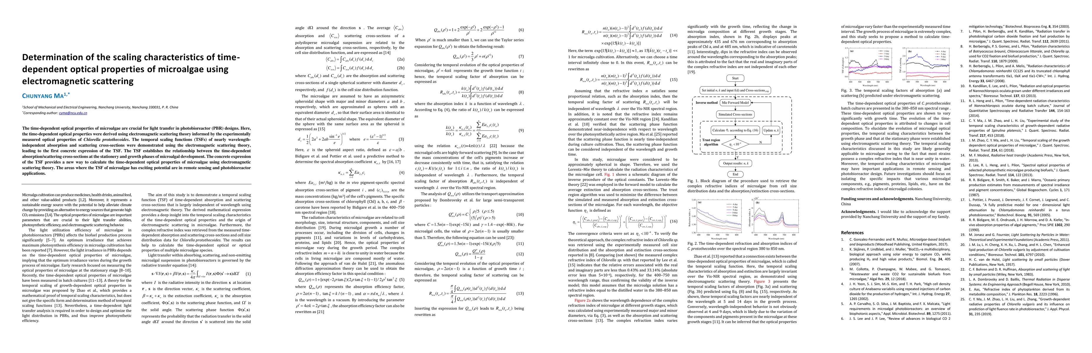 This paper derives the time-dependent optical properties of microalgae using electromagnetic scattering theory, establishing temporal scaling functions (TSFs) for absorption and scattering. The TSF provides a new method to calculate these properties, with potential applications in remote sensing and photobioreactor design.