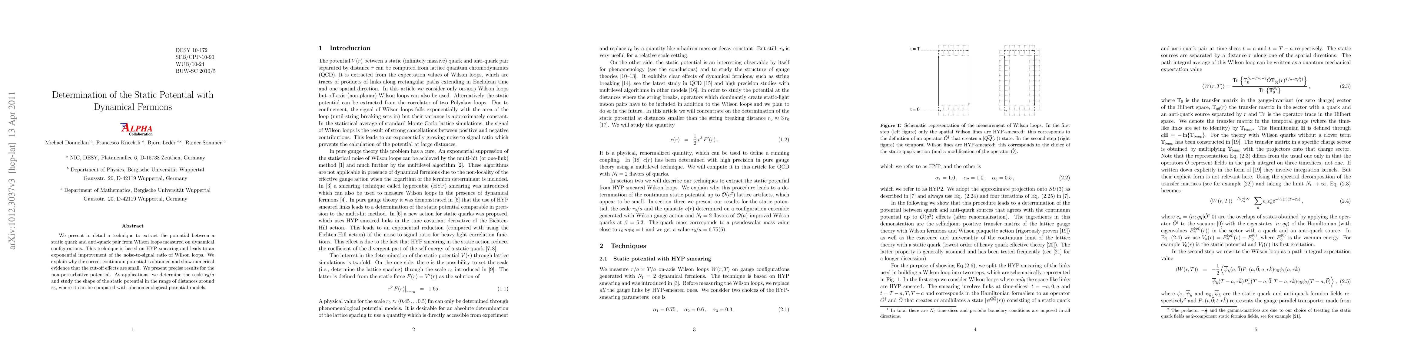 The paper presents a detailed technique for extracting the static potential with dynamical fermions, including HYP smearing for noise reduction and improved distance definitions.