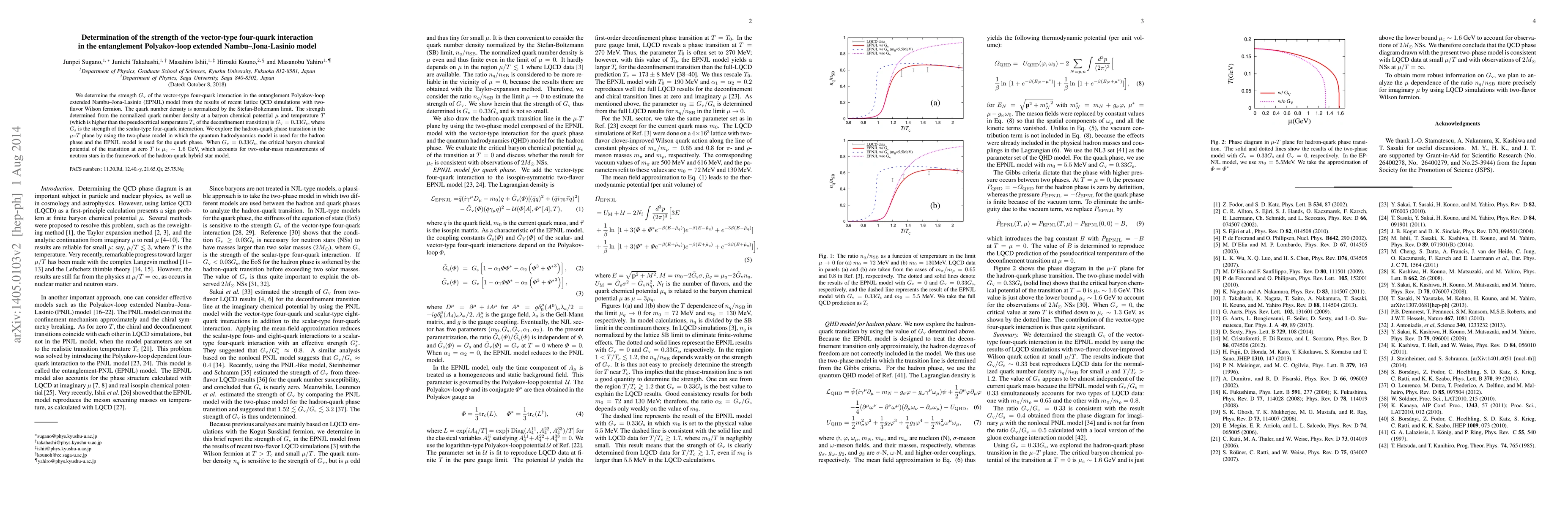 This paper determines the vector-type four-quark interaction strength $G_{\rm v}$ in the EPNJL model to be $G_{\rm v}=0.33 G_{\rm s}$ using lattice QCD simulations. It also explores the hadron-quark phase transition, finding a critical baryon chemical potential $\mu_c \sim 1.6$ GeV that aligns with neutron star mass measurements.