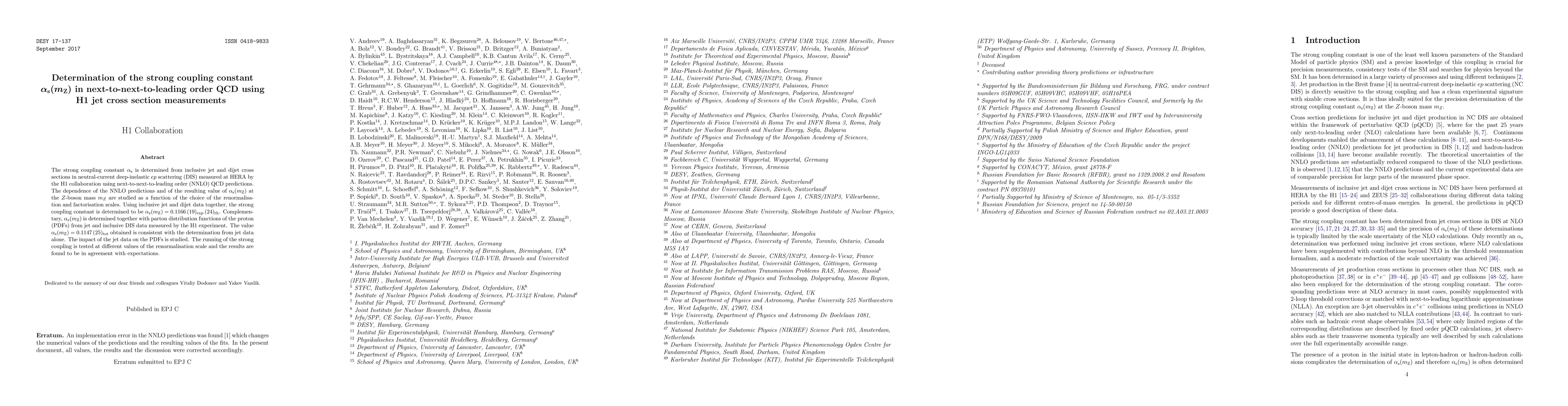 The H1 collaboration determines the strong coupling constant $\alpha_s(M_Z)$ using next-to-next-to-leading order QCD predictions from inclusive jet and dijet cross sections measured at HERA, yielding $\alpha_s(M_Z)=0.1166\,(19)_{\rm exp}\,(24)_{\rm th}$. The study also finds $\alpha_s(M_Z)=0.1147\,(25)_{\rm tot}$ when combined with parton distribution functions, consistent with jet data alone.