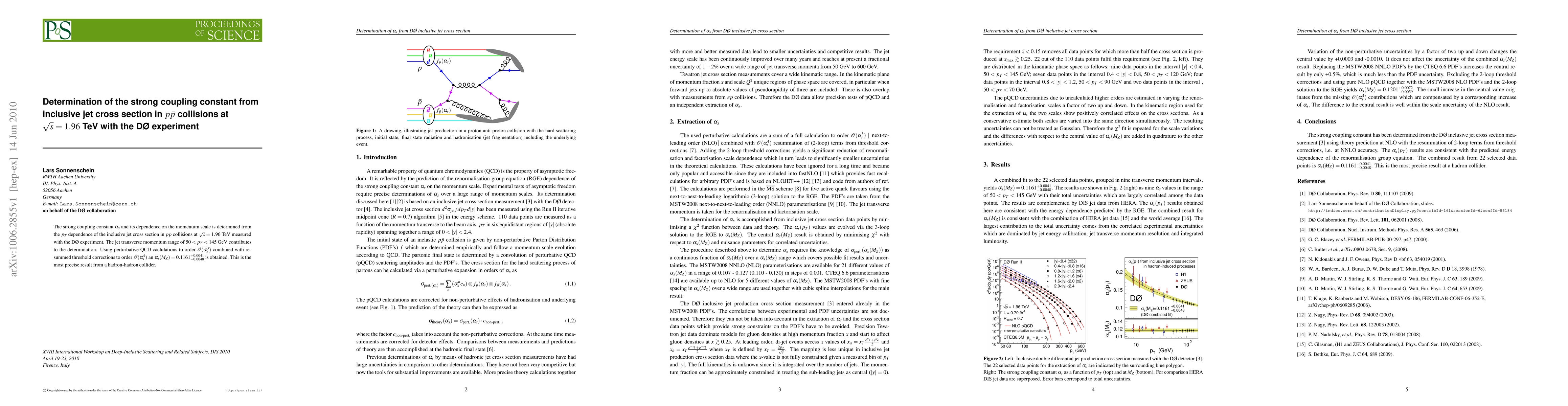 The D0 experiment measures the strong coupling constant alpha_s from the inclusive jet cross section in ppbar collisions at sqrt(s)=1.96 TeV, yielding alpha_s(M_Z)=0.1161^{+0.0041}_{-0.0048}, the most precise determination from a hadron-hadron collider. This result uses perturbative QCD calculations and resummed threshold corrections.