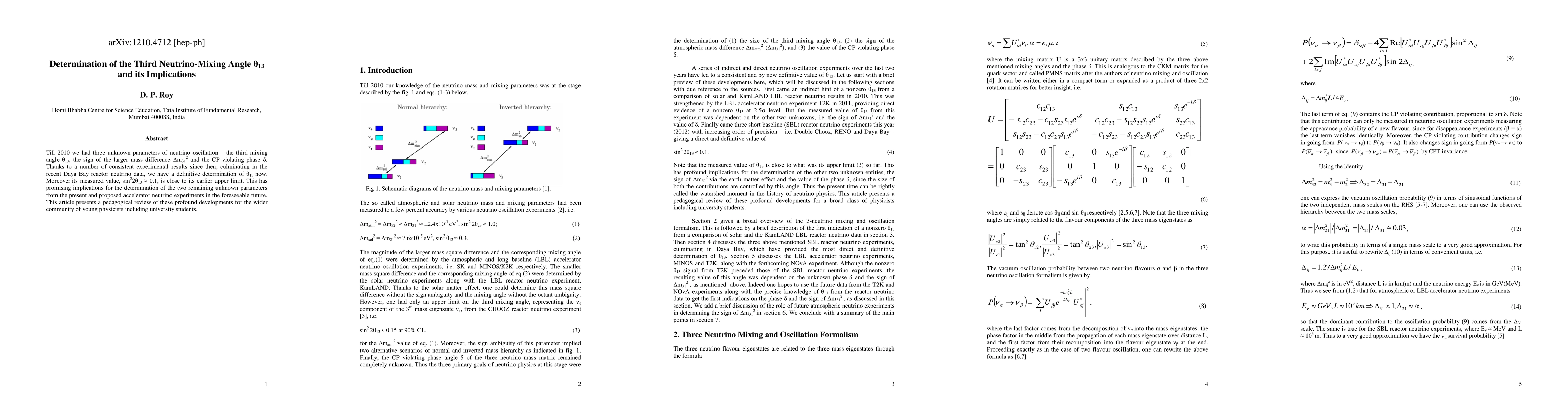 Till 2010 we had three unknown parameters of neutrino oscillation: the third mixing angle {\theta}_(13), the sign of the larger mass difference {\Delta}m^(2)_(31) and the CP violating phase {\delta}. Thanks to a number of consistent experimental results since then, culminating in the recent Daya Bay reactor neutrino data, we have a definitive determination of {\theta}_(13) now. Moreover its measured value, sin^(2)_(2 {\theta}_(13)) = 0.1, is close to its earlier upper limit. This has promising implications for the determination of the two remaining unknown parameters from the present and proposed accelerator neutrino experiments in the foreseeable future. This article presents a pedagogical review of these profound developments for the wider community of young physicists including university students.