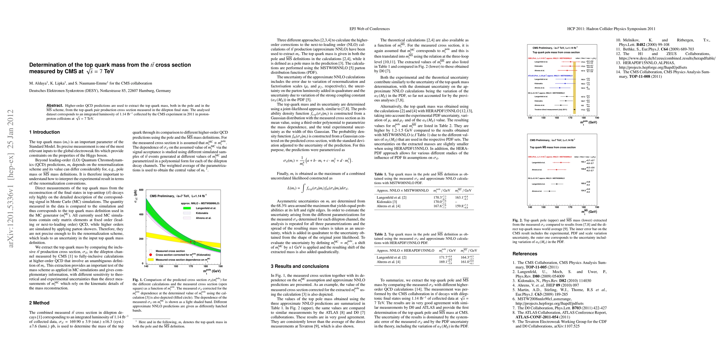 This paper determines the top quark mass using higher-order QCD predictions and the top quark pair production cross section measured in the dilepton final state by the CMS experiment at $\sqrt{s} = 7$ TeV. The analysis is based on an integrated luminosity of 1.14 fb$^{-1}$ collected in 2011.