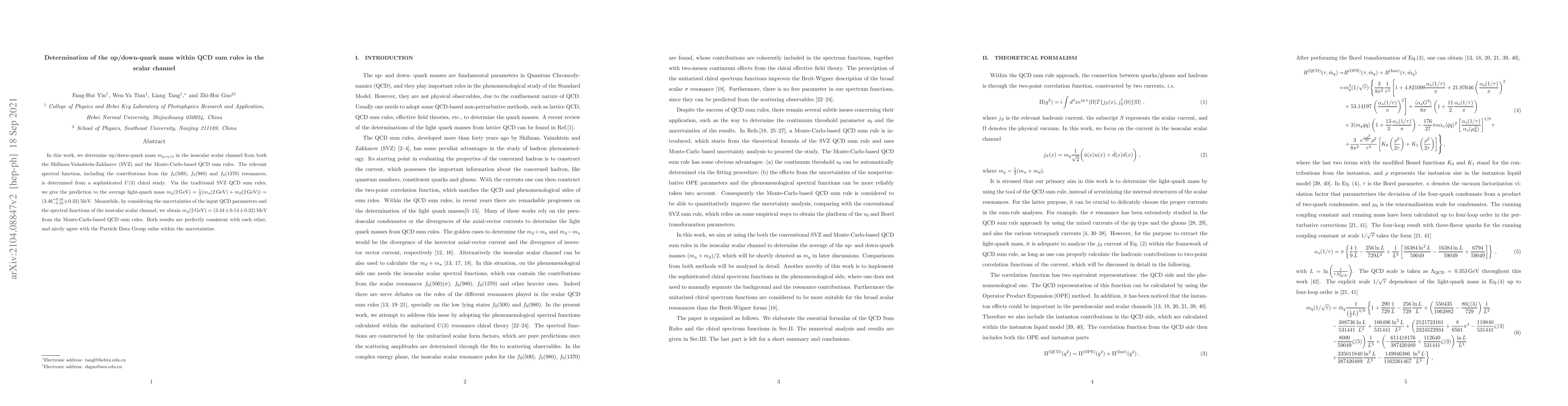 This study determines the up/down-quark mass using QCD sum rules in the scalar channel, obtaining a light-quark mass of 3.44 MeV with consistent results from two methods.