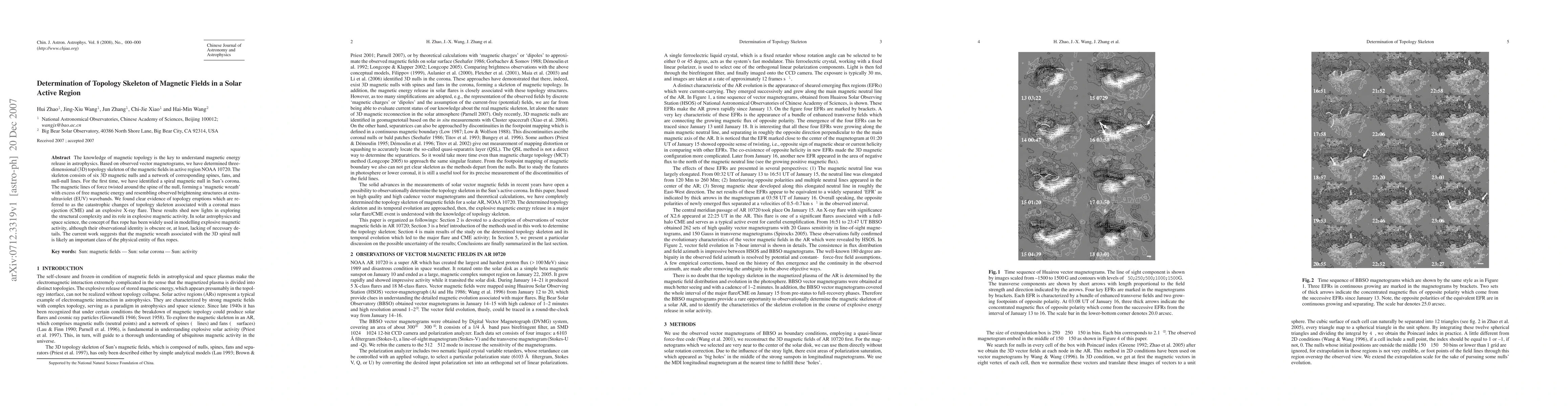 The knowledge of magnetic topology is the key to understand magnetic energy release in astrophysics. Based on observed vector magnetograms, we have determined threedimensional (3D) topology skeleton of the magnetic fields in active region NOAA 10720. The skeleton consists of six 3D magnetic nulls and a network of corresponding spines, fans, and null-null lines. For the first time, we have identified a spiral magnetic null in Sun's corona. The magnetic lines of force twisted around the spine of the null, forming a 'magnetic wreath' with excess of free magnetic energy and resembling observed brightening structures at extraultraviolet (EUV) wavebands. We found clear evidence of topology eruptions which are referred to as the catastrophic changes of topology skeleton associated with a coronal mass ejection (CME) and an explosive X-ray flare. These results shed new lights in exploring the structural complexity and its role in explosive magnetic activity. In solar astrophysics and space science, the concept of flux rope has been widely used in modelling explosive magnetic activity, although their observational identity is obscure or, at least, lacking of necessary details. The current work suggests that the magnetic wreath associated with the 3D spiral null is likely an important class of the physical entity of flux ropes.