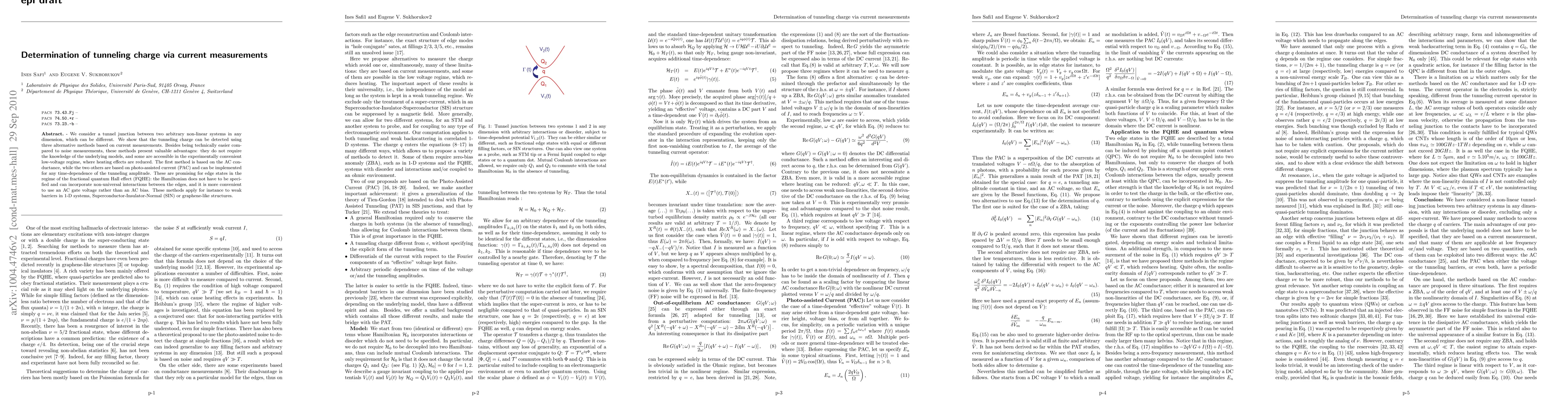 Researchers have developed three new methods to detect tunneling charge using current measurements, offering a more accessible alternative to noise measurements and applicable to various systems including edge states in the fractional quantum Hall effect.