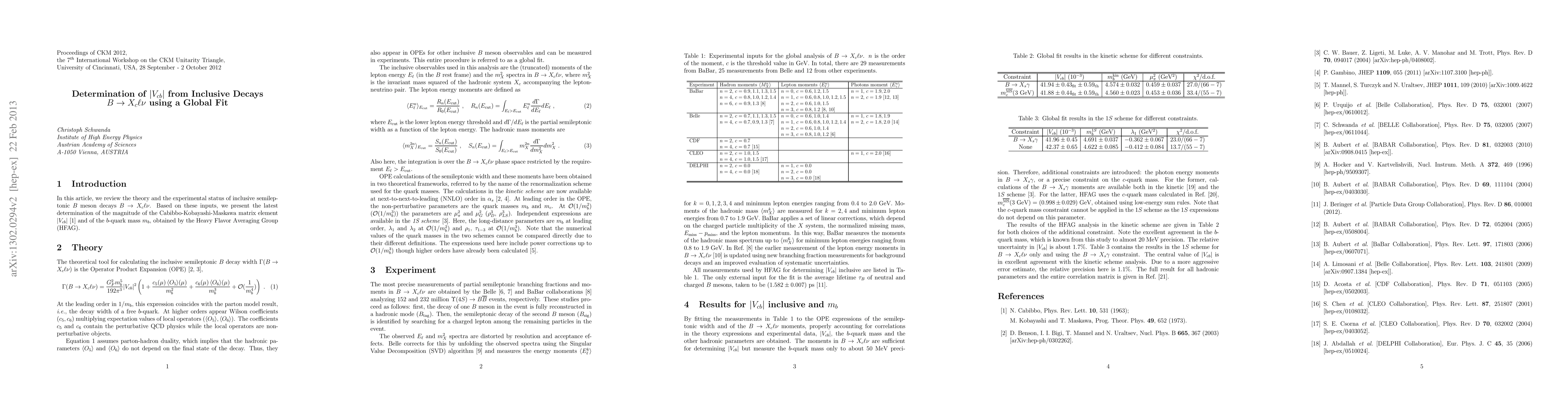 In this article, we review the theory and the experimental status of inclusive semileptonic B meson decays B -> Xc l nu. Based on these inputs, we present the latest determination of the magnitude of the Cabibbo-Kobayashi-Maskawa matrix element |V_cb| and of the b-quark mass m_b, obtained by the Heavy Flavor Averaging Group (HFAG).