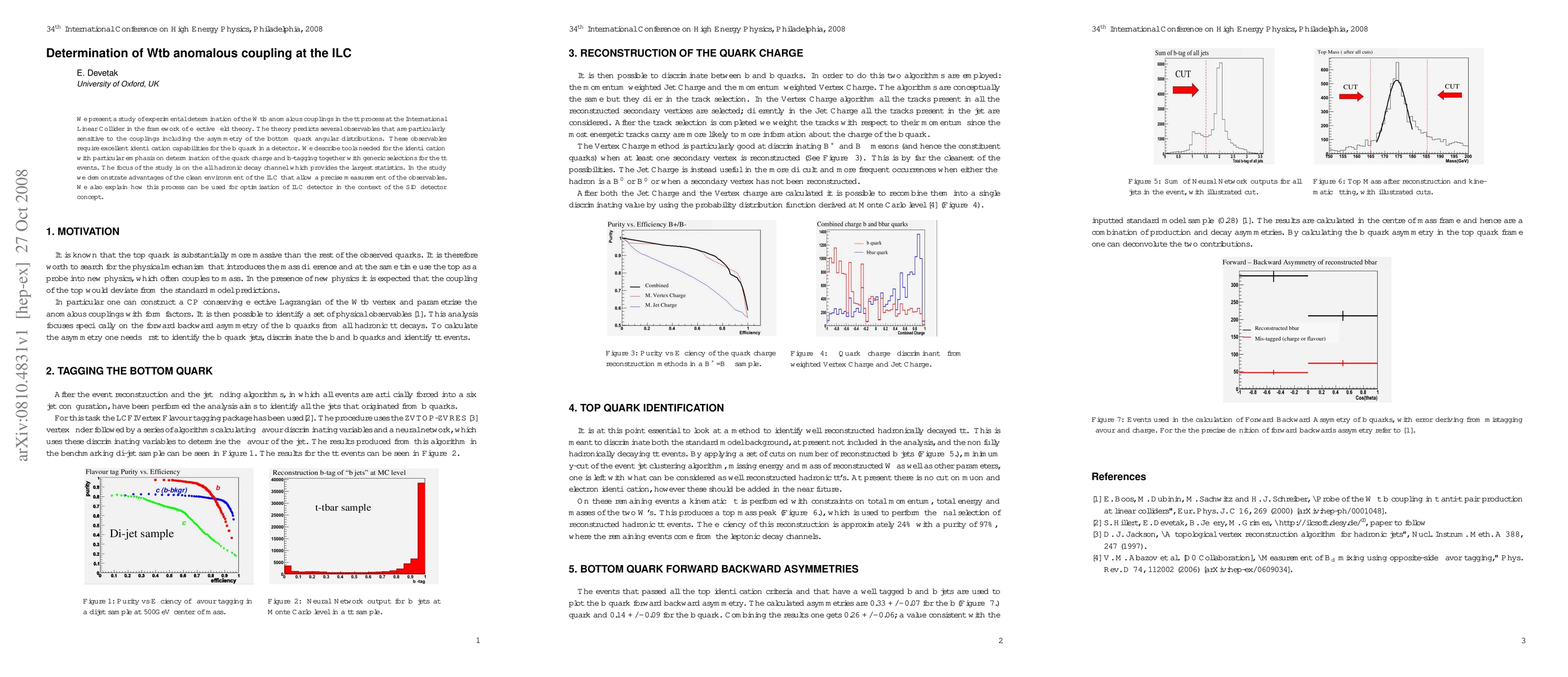 We present a study of experimental determination of the Wtb anomalous couplings in the $t\bar{t}$ process at the International Linear Collider in the framework of effective field theory. The theory predicts several observables that are particularly sensitive to the couplings including the asymmetry of the bottom quark angular distributions. These observables require excellent identification capabilities for the b quark in a detector. We describe tools needed for the identification with particular emphasis on determination of the quark charge and b-tagging together with generic selections for the $t\bar{t}$ events. The focus of the study is on the all hadronic decay channel which provides the largest statistics. In the study we demonstrate advantages of the clean environment of the ILC that allow a precise measurement of the observables. We also explain how this process can be used for optimisation of ILC detector in the context of the SiD detector concept