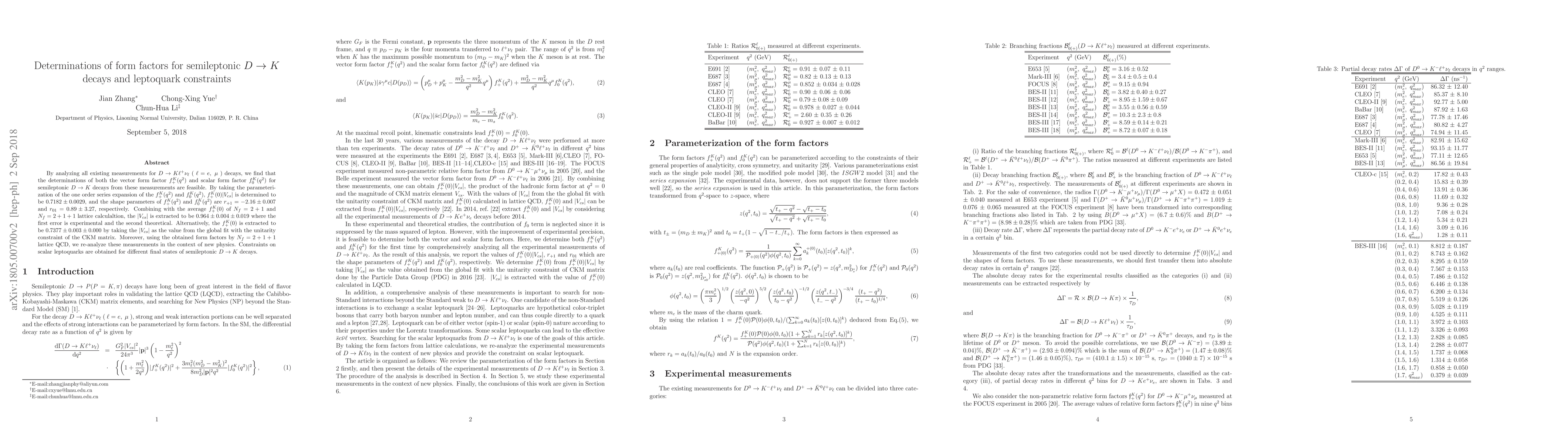 By analyzing all existing measurements for $ D\rightarrow K \ell^+ \nu_{\ell} $ ( $\ell=e,\ \mu$ ) decays, we find that the determinations of both the vector form factor $f_+^K(q^2)$ and scalar form factor $f_0^K(q^2)$ for semileptonic $D\rightarrow K$ decays from these measurements are feasible. By taking the parameterization of the one order series expansion of the $f_+^K(q^2)$ and $f_0^K(q^2)$, $f_+^K(0)|V_{cs}|$ is determined to be $0.7182\pm0.0029$, and the shape parameters of $f_+^K(q^2)$ and $f_0^K(q^2)$ are $r_{+1}=-2.16\pm0.007$ and $r_{01}=0.89\pm3.27$, respectively. Combining with the average $f_+^K(0)$ of $N_f=2+1$ and $N_f=2+1+1$ lattice calculaltion, the $|V_{cs}|$ is extracted to be $0.964\pm0.004\pm0.019$ where the first error is experimental and the second theoretical. Alternatively, the $f_+^K(0)$ is extracted to be $0.7377\pm0.003\pm0.000$ by taking the $|V_{cs}|$ as the value from the global fit with the unitarity constraint of the CKM matrix. Moreover, using the obtained form factors by $N_f=2+1+1$ lattice QCD, we re-analyze these measurements in the context of new physics. Constraints on scalar leptoquarks are obtained for different final states of semileptonic $D \rightarrow K$ decays.