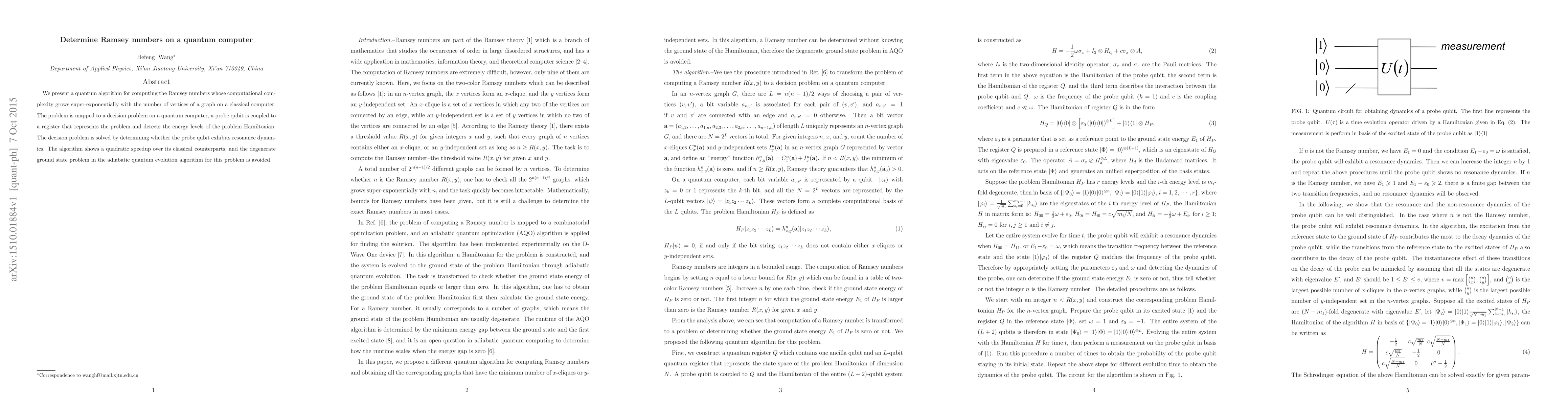 A quantum algorithm has been developed to calculate Ramsey numbers, achieving a quadratic speedup over classical computers and avoiding a complex problem in adiabatic quantum evolution.