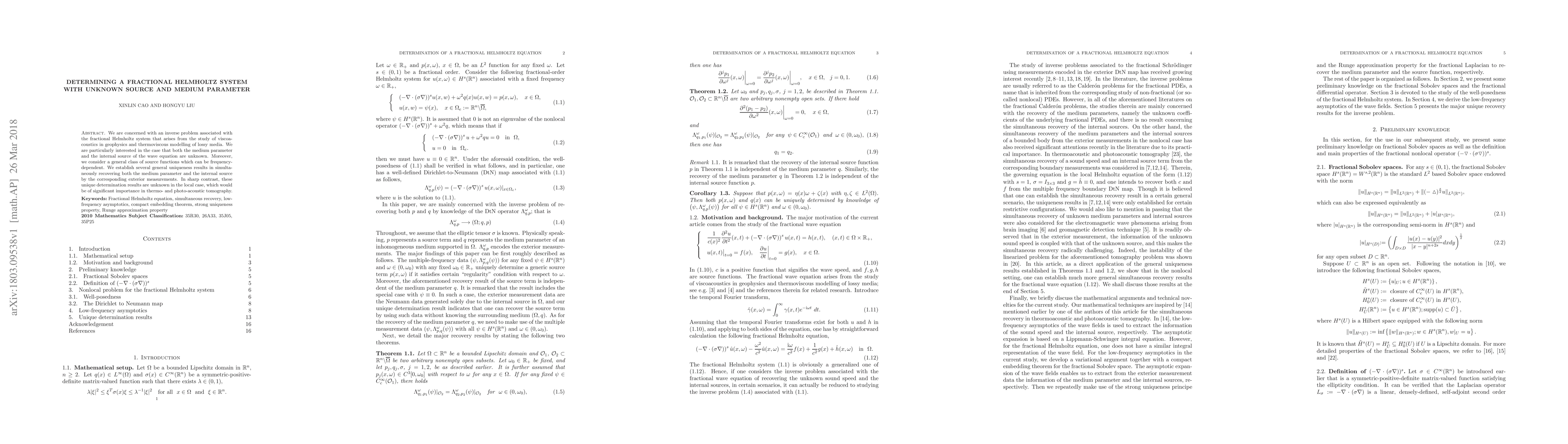 This paper addresses an inverse problem for a fractional Helmholtz system in geophysics and thermoviscous media, focusing on determining both the unknown medium parameter and internal source from exterior measurements. Uniqueness results are established for this simultaneous recovery, contrasting with the local case, which remains significantly underexplored for applications in thermo- and photo-acoustic tomography.