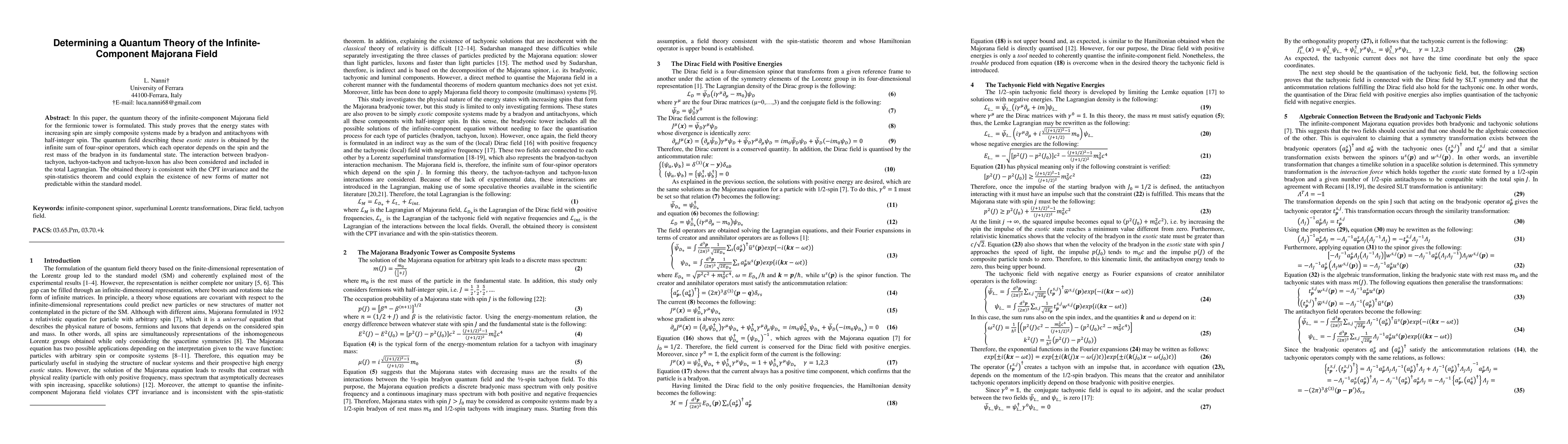 This paper proposes a quantum theory for the infinite-component Majorana field, which reveals exotic states made of bradyons and antitachyons with half-integer spin. The theory is consistent with known principles and could explain new forms of matter not predicted by the standard model.