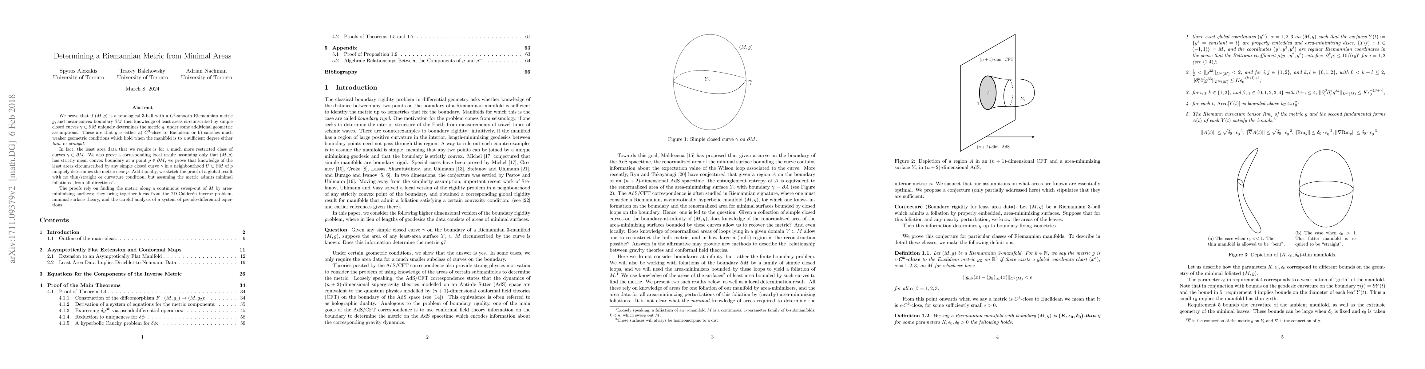 We prove that if $(M,g)$ is a topological 3-ball with a $C^4$-smooth Riemannian metric $g$, and mean-convex boundary $\partial M$ then knowledge of least areas circumscribed by simple closed curves $\gamma \subset \partial M$ uniquely determines the metric $g$, under some additional geometric assumptions. These are that $g$ is either a) $C^3$-close to Euclidean or b) satisfies much weaker geometric conditions which hold when the manifold is to a sufficient degree either thin, or straight. %sufficiently thin. In fact, the least area data that we require is for a much more restricted class of curves $\gamma\subset \partial M$. We also prove a corresponding local result: assuming only that $(M,g)$ has strictly mean convex boundary at a point $p\in\partial M$, we prove that knowledge of the least areas circumscribed by any simple closed curve $\gamma$ in a neighbourhood $U\subset \partial M$ of $p$ uniquely determines the metric near $p$. Additionally, we sketch the proof of a global result with no thin/straight or curvature condition, but assuming the metric admits minimal foliations "from all directions". The proofs rely on finding the metric along a continuous sweep-out of $M$ by area-minimizing surfaces; they bring together ideas from the 2D-Calder\'on inverse problem, minimal surface theory, and the careful analysis of a system of pseudo-differential equations.