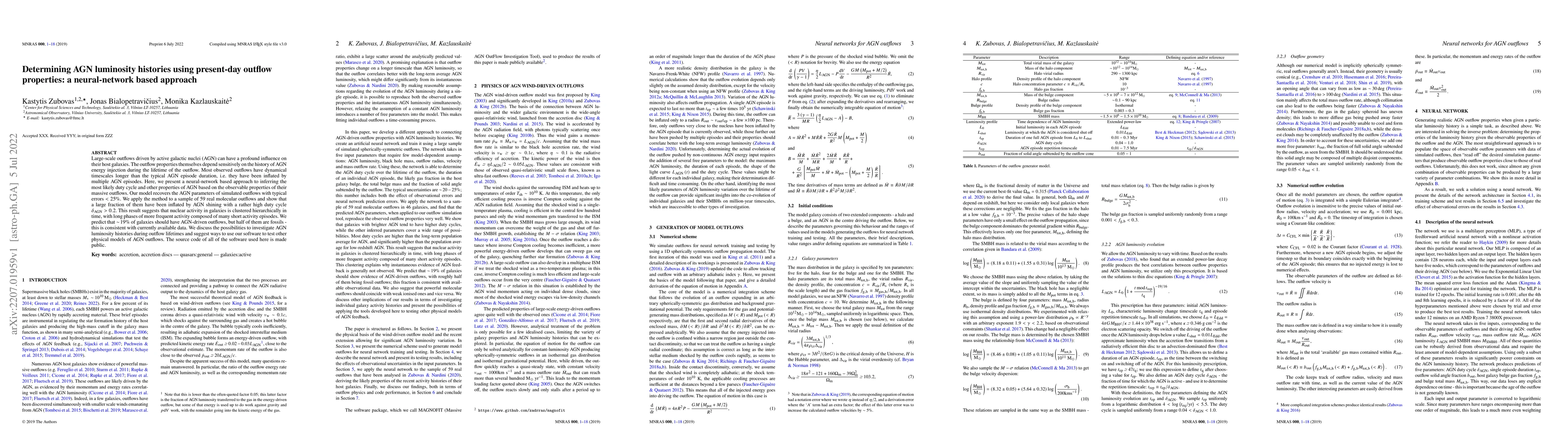 This paper introduces a neural-network based method to infer AGN luminosity histories from the properties of large-scale outflows driven by active galactic nuclei. The model shows that a significant fraction of outflows are influenced by AGN with high duty cycles, suggesting clustered hierarchical nuclear activity.