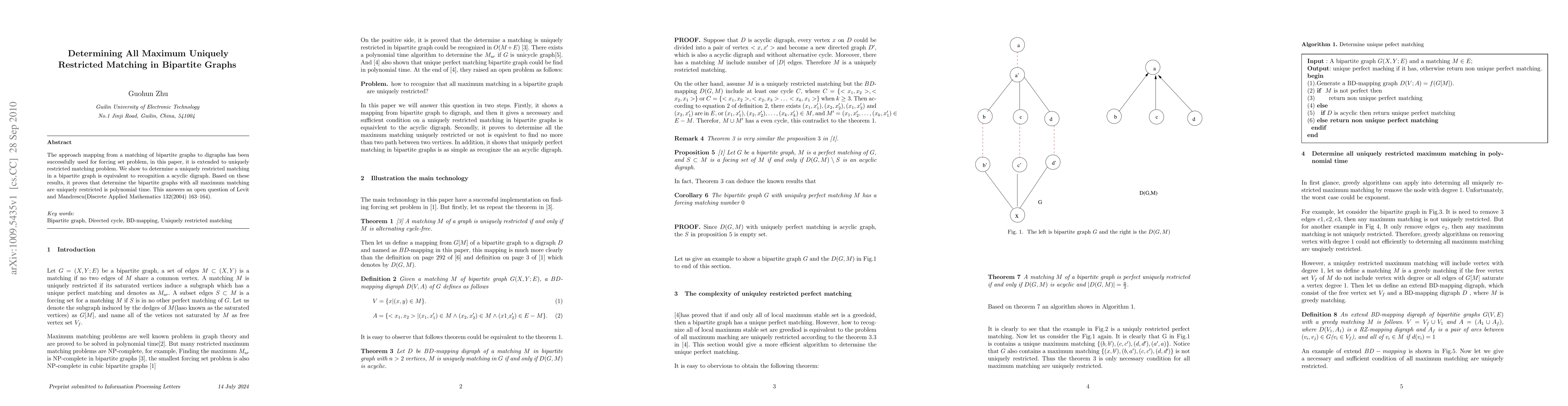 The approach mapping from a matching of bipartite graphs to digraphs has been successfully used for forcing set problem, in this paper, it is extended to uniquely restricted matching problem. We show to determine a uniquely restricted matching in a bipartite graph is equivalent to recognition a acyclic digraph. Based on these results, it proves that determine the bipartite graphs with all maximum matching are uniquely restricted is polynomial time. This answers an open question of Levit and Mandrescu(Discrete Applied Mathematics 132(2004) 163-164).