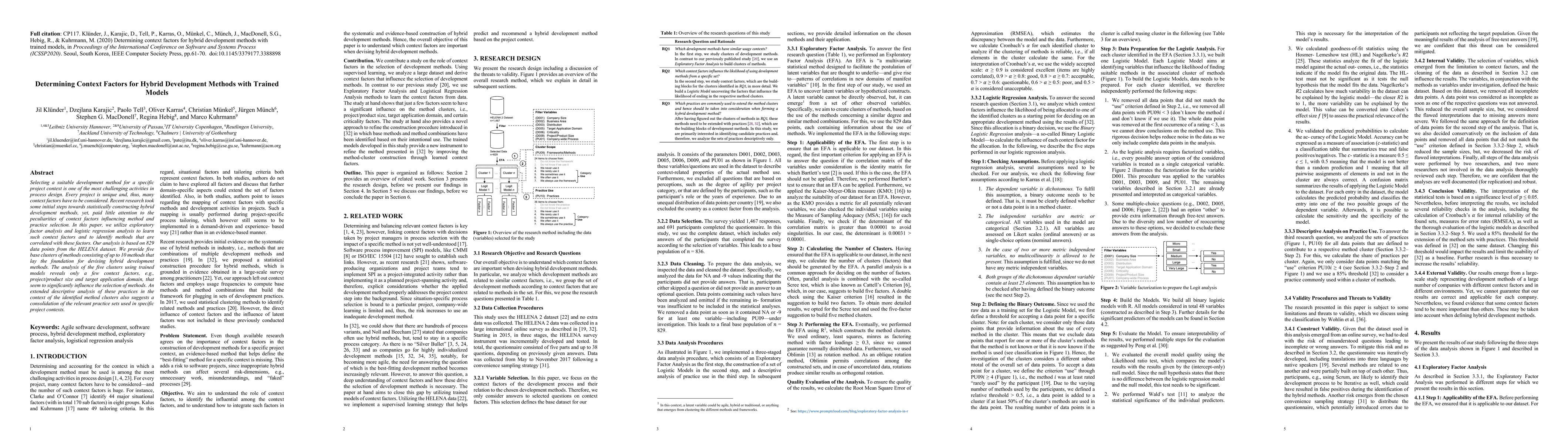 Selecting a suitable development method for a specific project context is one of the most challenging activities in process design. Every project is unique and, thus, many context factors have to be considered. Recent research took some initial steps towards statistically constructing hybrid development methods, yet, paid little attention to the peculiarities of context factors influencing method and practice selection. In this paper, we utilize exploratory factor analysis and logistic regression analysis to learn such context factors and to identify methods that are correlated with these factors. Our analysis is based on 829 data points from the HELENA dataset. We provide five base clusters of methods consisting of up to 10 methods that lay the foundation for devising hybrid development methods. The analysis of the five clusters using trained models reveals only a few context factors, e.g., project/product size and target application domain, that seem to significantly influence the selection of methods. An extended descriptive analysis of these practices in the context of the identified method clusters also suggests a consolidation of the relevant practice sets used in specific project contexts.