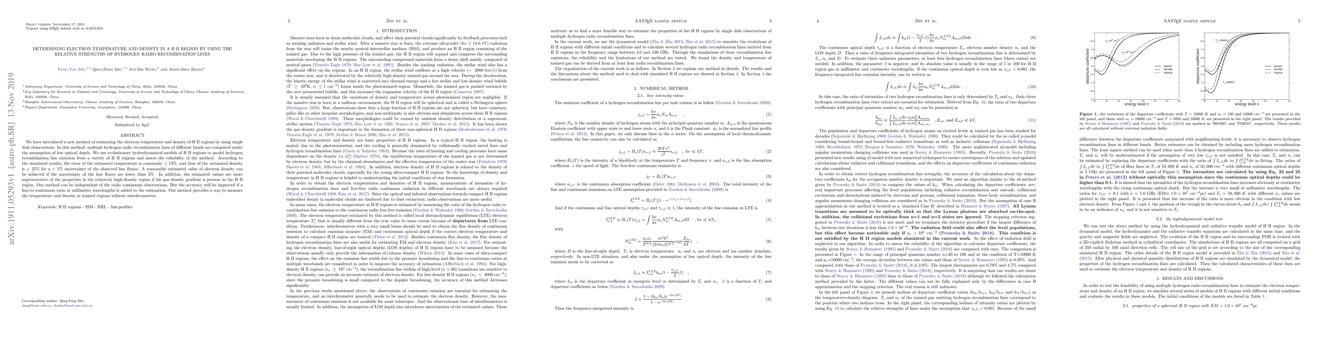 This paper introduces a new method for estimating electron temperature and density in H II regions using single dish observations of hydrogen radio recombination lines. The method shows an error of less than 13% for temperature and 25% for density estimates, provided uncertainties in observed line fluxes are below 1%.