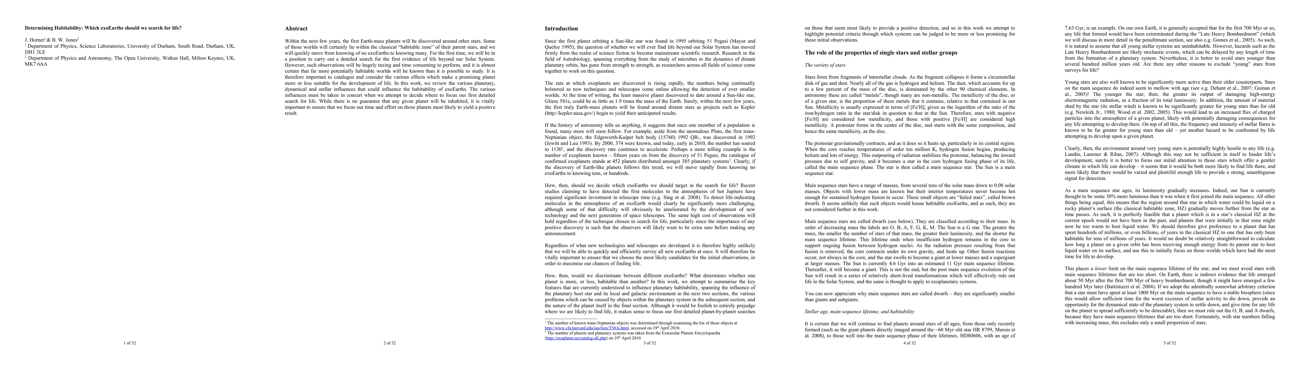 Within the next few years, the first Earth-mass planets will be discovered around other stars. Some of those worlds will certainly lie within the classical "habitable zone" of their parent stars, and we will quickly move from knowing of no exoEarths to knowing many. For the first time, we will be in a position to carry out a detailed search for the first evidence of life beyond our Solar System. However, such observations will be hugely taxing and time consuming to perform, and it is almost certain that far more potentially habitable worlds will be known than it is possible to study. It is therefore important to catalogue and consider the various effects which make a promising planet more or less suitable for the development of life. In this work, we review the various planetary, dynamical and stellar influences that could influence the habitability of exoEarths. The various influences must be taken in concert when we attempt to decide where to focus our first detailed search for life. While there is no guarantee that any given planet will be inhabited, it is vitally important to ensure that we focus our time and effort on those planets most likely to yield a positive result.
