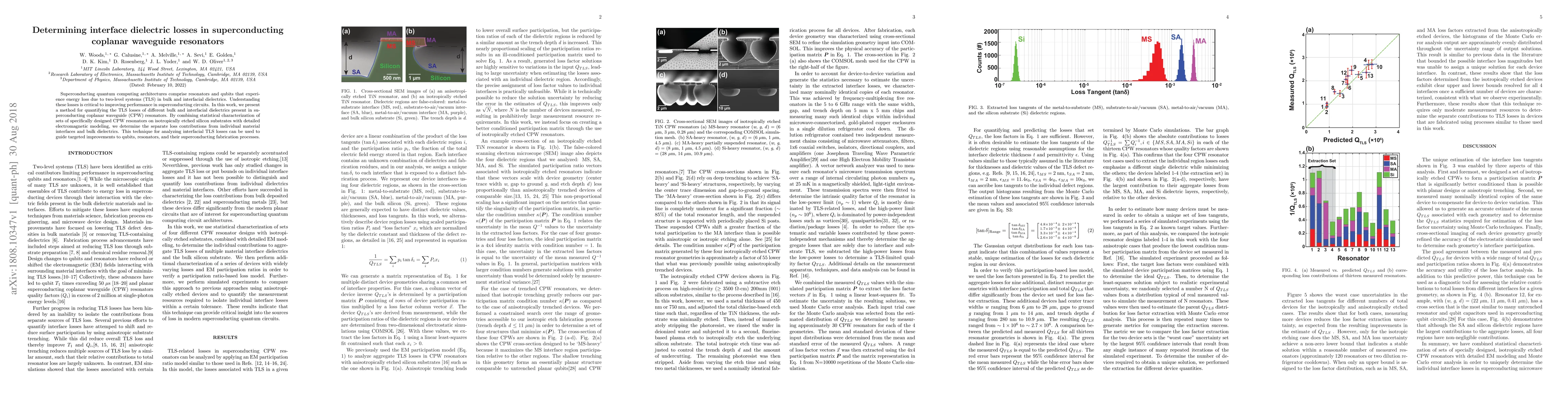 This paper presents a method to quantify two-level system (TLS) losses in superconducting coplanar waveguide resonators, distinguishing between bulk and interfacial dielectric losses. The approach combines statistical analysis of designed CPW resonators and electromagnetic modeling, providing insights for optimizing superconducting quantum computing architectures.