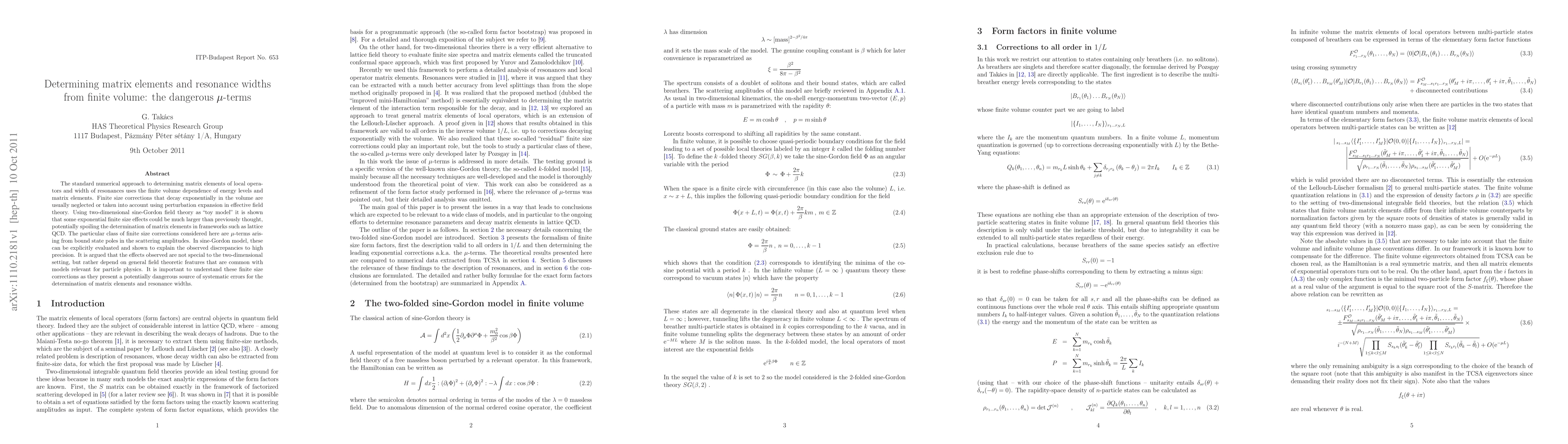 This paper investigates the significant, previously underestimated finite size corrections, termed "dangerous mu-terms," in determining matrix elements and resonance widths using finite volume methods. It demonstrates through a two-dimensional sine-Gordon model that these corrections can severely impact lattice QCD calculations, highlighting their general applicability across various field theories.