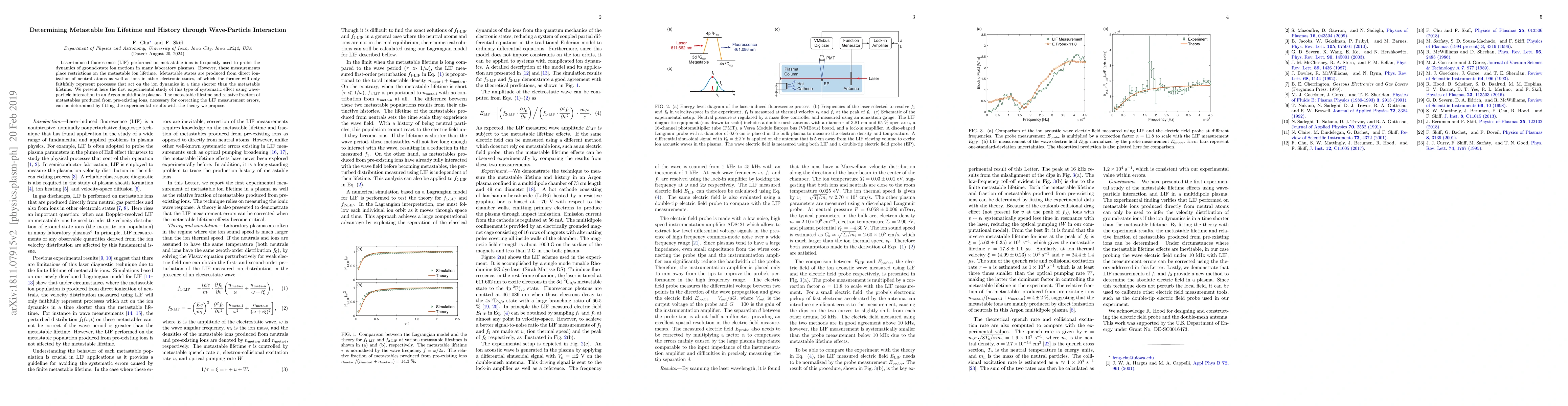 Researchers developed a method to measure metastable ion lifetime and history in laboratory plasmas using wave-particle interaction, enabling more accurate laser-induced fluorescence measurements.