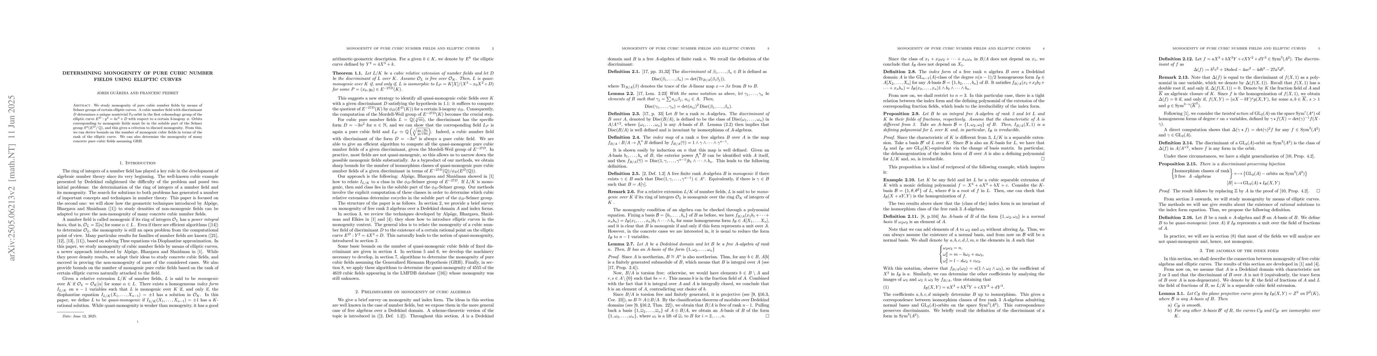 We study monogenity of pure cubic number fields by means of Selmer groups of certain elliptic curves. A cubic number field with discriminant $D$ determines a unique nontrivial $\mathbb{F}_3$-orbit in the first cohomology group of the elliptic curve $E^D: y^2 = 4x^3 + D$ with respect to a certain 3-isogeny $\phi$. Orbits corresponding to monogenic fields must lie in the soluble part of the Selmer group $S^{\phi}(E^D/\mathbb{Q})$, and this gives a criterion to discard monogenity. From this, we can derive bounds on the number of monogenic cubic fields in terms of the rank of the elliptic curve. We can also determine the monogenity of many concrete pure cubic fields assuming GRH.