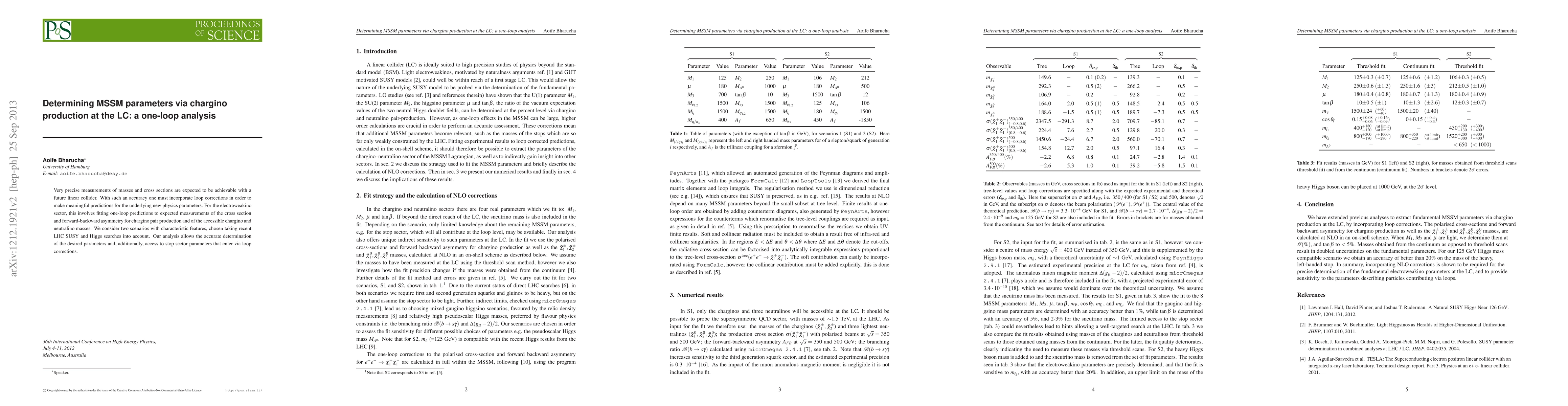 This paper investigates the determination of Minimal Supersymmetric Standard Model (MSSM) parameters through one-loop analyses of chargino production at a future linear collider. It focuses on fitting one-loop predictions to measurements of chargino pair production cross sections and asymmetries, enabling precise extraction of MSSM parameters and insights into stop sector parameters.