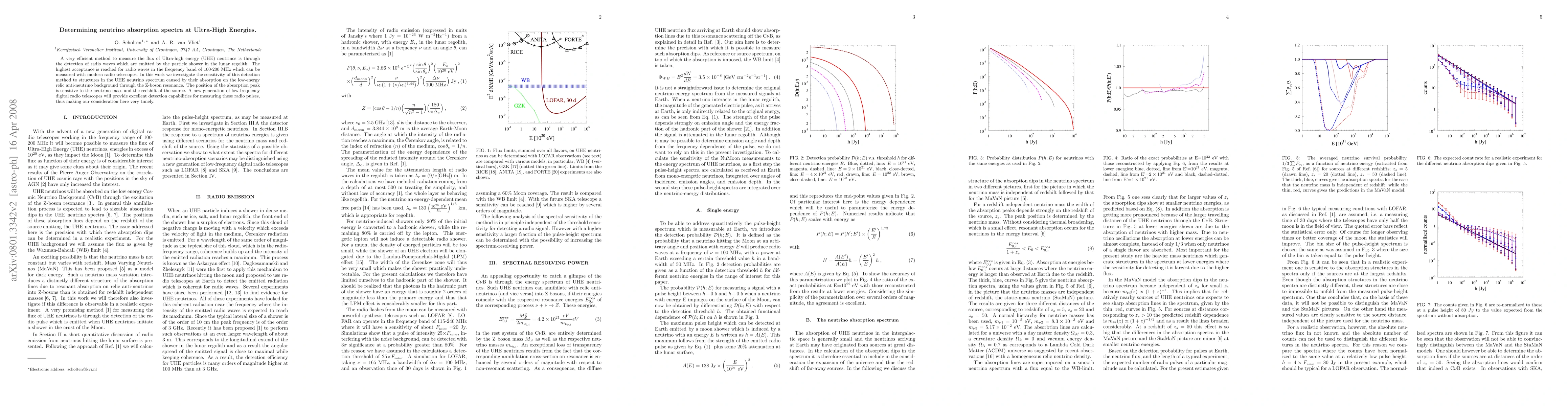 A very efficient method to measure the flux of Ultra-high energy (UHE) neutrinos is through the detection of radio waves which are emitted by the particle shower in the lunar regolith. The highest acceptance is reached for radio waves in the frequency band of 100-200 MHz which can be measured with modern radio telescopes. In this work we investigate the sensitivity of this detection method to structures in the UHE neutrino spectrum caused by their absorption on the low-energy relic anti-neutrino background through the Z-boson resonance. The position of the absorption peak is sensitive to the neutrino mass and the redshift of the source. A new generation of low-frequency digital radio telescopes will provide excellent detection capabilities for measuring these radio pulses, thus making our consideration here very timely.